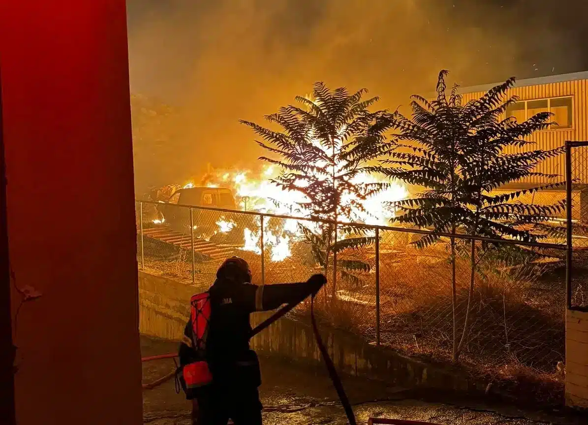 Από την πυρκαγιά απειλούνται εργοστάσια που βρίσκονται κοντά στο σημείο που καίει.