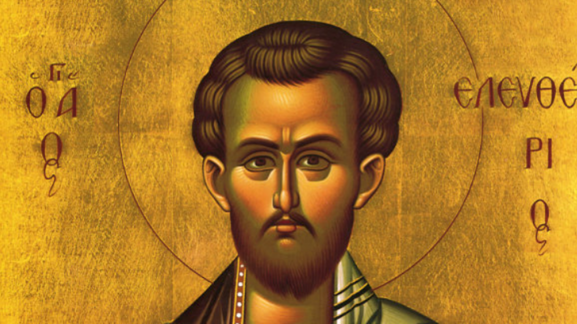 Ελευθέριος ο θαυμαστός και ένδοξος Ιερομάρτυρας έλαμψε ως φωτεινό αστέρι κατά το δεύτερο ήμισυ του δευτέρου αιώνος. Οι γονείς του πλούσιοι και ευγενείς και ως την πίστη ευσεβέστατοι. Η μητέρα του Ανθία διδάχτηκε την Αλήθεια από μαθητές του Αποστόλου Παύλου. Από την μητέρα του έλαβε το όνομα Ελευθέριος και τον ανέθρεψε ευσεβώς. Ο πατέρας του πλούσιος, κοιμήθηκε μετά από λίγο καιρό από την γέννηση του Ελευθερίου. Έτσι έμεινε με την μητέρα του, η οποία τον έδωσε εις τον Αρχιερέα της Ρώμης για να του μάθει τα ιερά γράμματα.