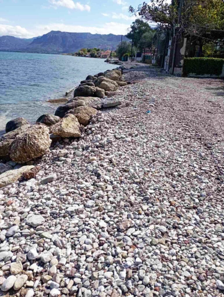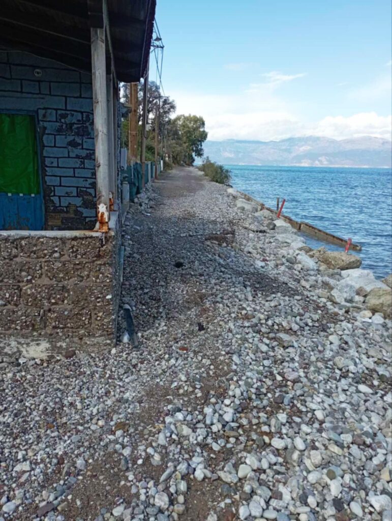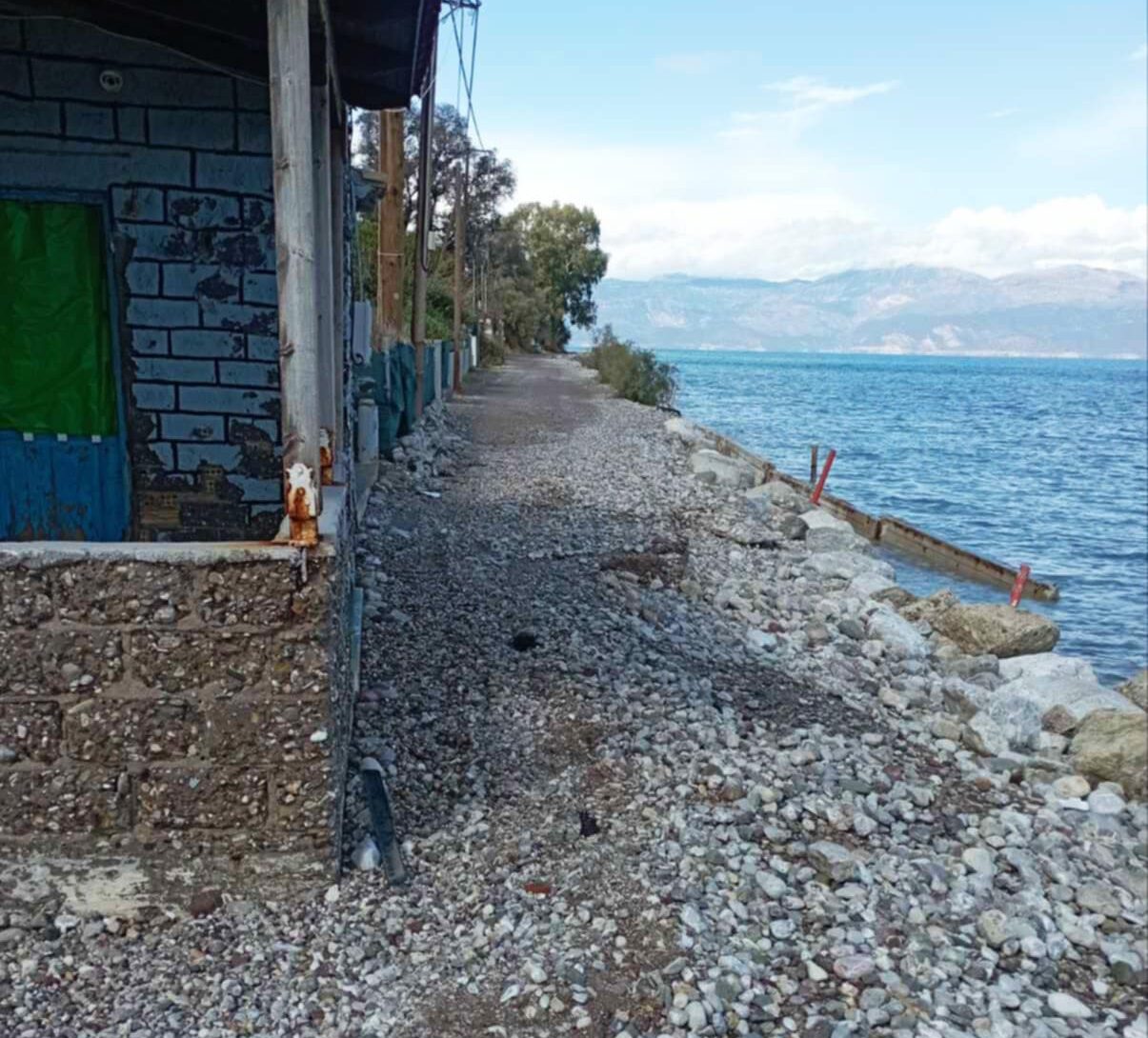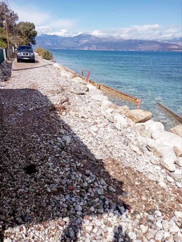 Η θάλασσα “κατάπιε” τμήμα του οδοστρώματος, προκαλώντας σημαντικές φθορές και καθιστώντας το σημείο επικίνδυνο για τη διέλευση οχημάτων και πεζών.