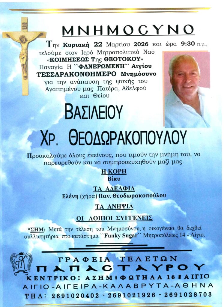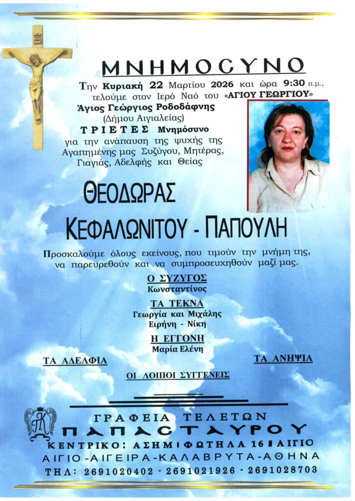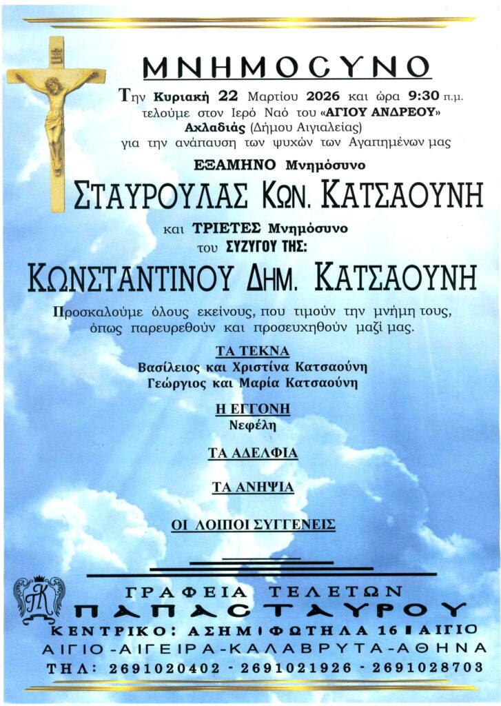 ΑΙΓΙΑΛΕΙΑ: Μνημόσυνα που θα τελεστούν την Κυριακή 22 Μαρτίου