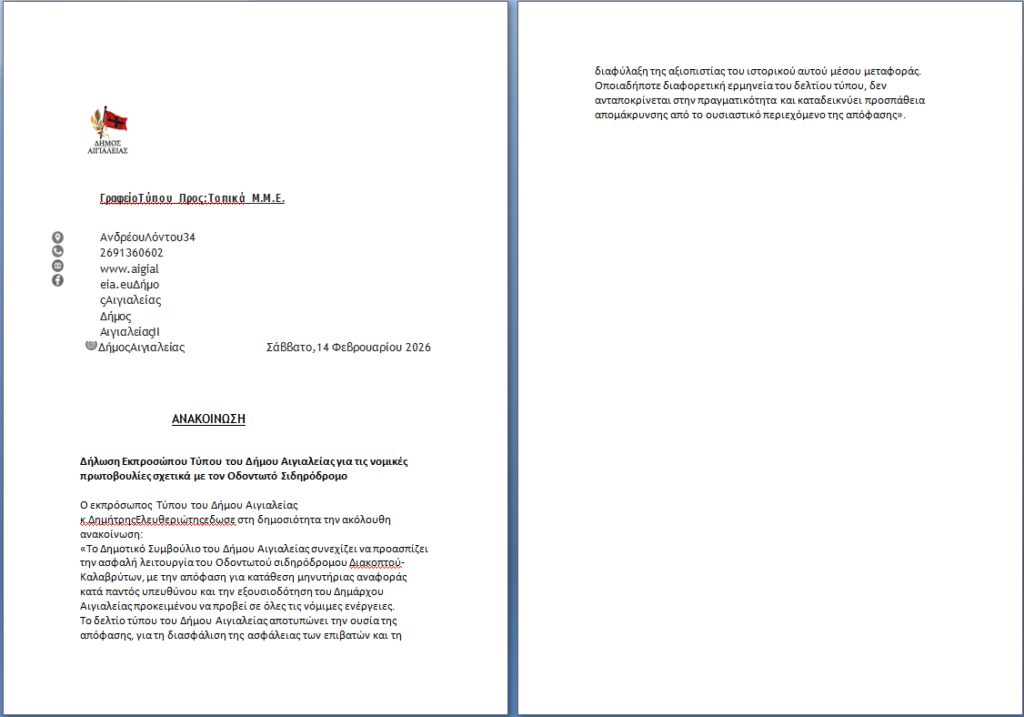 ΔΕΙΤΕ ΤΙ ΓΡΑΦΕΙ ΤΟ 2ο ΔΕΛΤΙΟ ΤΥΠΟΥ ΤΗΣ ΑΙΓΙΑΛΕΙΑΣ: