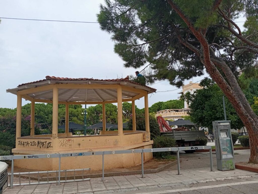Στις 16 Οκτωβρίου οι πρώτες παρεμβάσεις δημιούργησαν την εντύπωση ότι το κιόσκι επιτέλους μπαίνει σε τροχιά ανανέωσης. Τα προβλήματα ήταν εμφανή, η εικόνα εγκατάλειψης επίσης—άρα, η απόφαση για επισκευή μόνο θετικά μπορούσε να ιδωθεί.