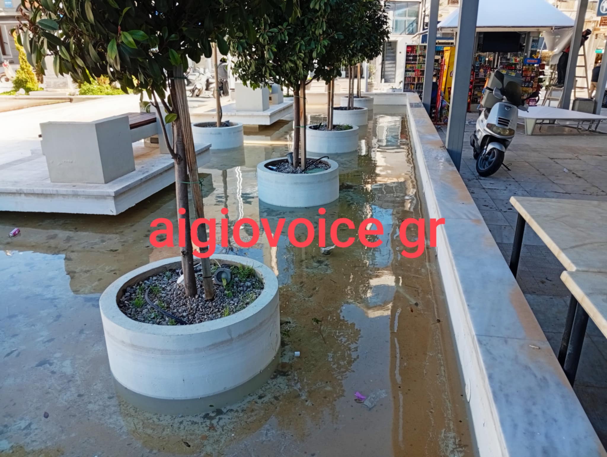 Μια βόλτα στην πλατεία Αγίας Λαύρας του Αιγίου είναι αρκετή για να διαπιστώσει κανείς ότι οι τεχνητές λίμνες που μετά την ανάπλαση της πλατείας κατασκευάστηκαν για να γεμίζουν με νερό και να δίνουν την εικόνα όασης, έχουν μετατραπεί σε εστίες μόλυνσης και συσσώρευσης σκουπιδιών.