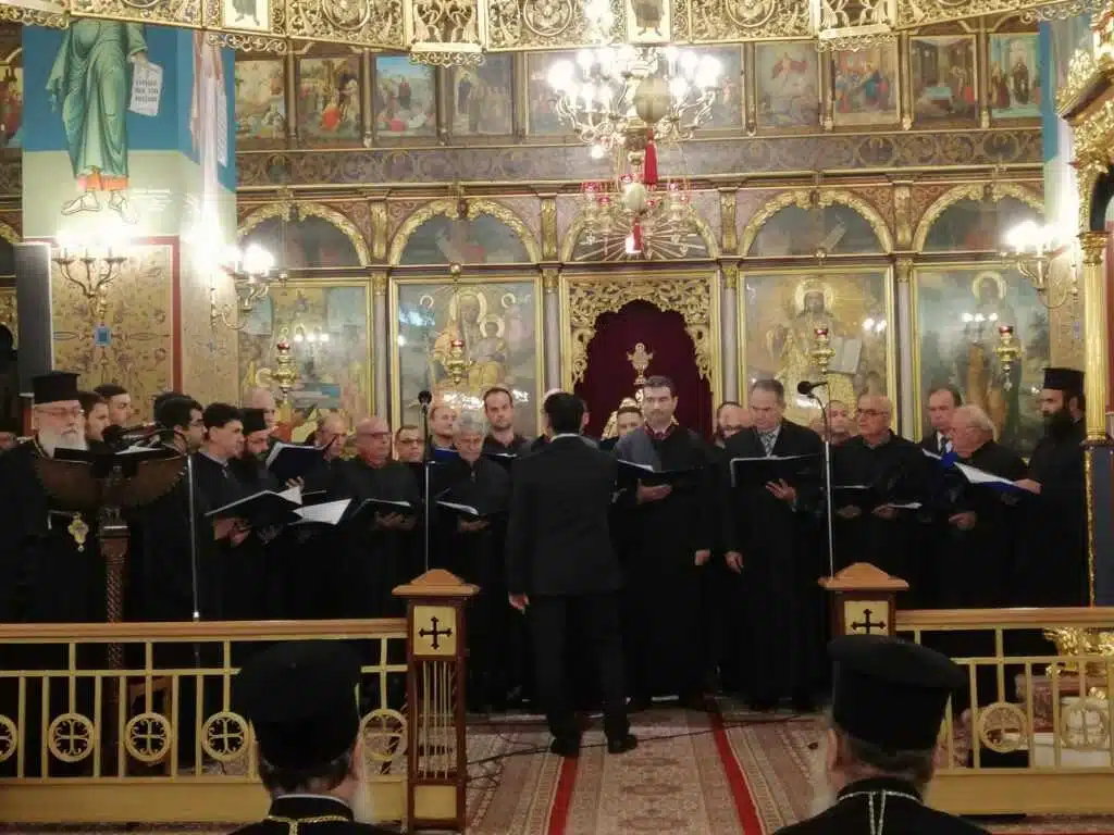 Τους εκκλησιαστικούς ύμνους των Χριστουγέννων θα αποδώσει η χορωδία του Συλλόγου Ιεροψαλτών Αιγιαλείας 1918 «Ιωάννης ο Κουκουζέλης», υπό τη διεύθυνση του Χοράρχου κ. Φωτίου Θεοδωρακόπουλου.