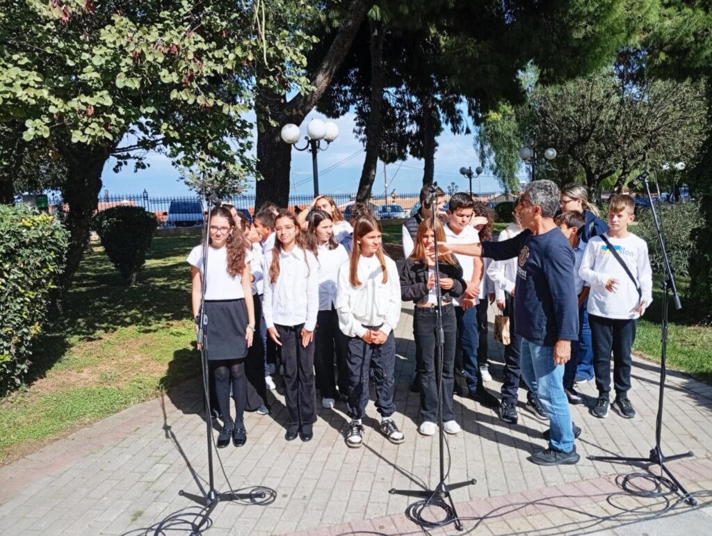 Η χορωδία του 1ου Γυμνασίου Αιγίου, υπό τη διεύθυνση της εκπαιδευτικού Θάλειας Θεοτοκάτου, έψαλε με solemn τρόπο τον Εθνικό Ύμνο, δημιουργώντας συγκινησιακή ατμόσφαιρα.