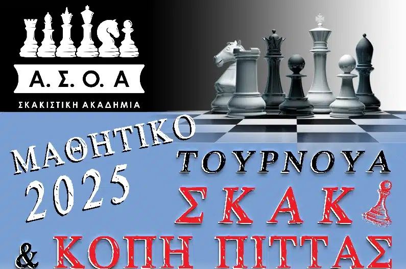 Η Σκακιστική Ακαδημία διοργανώνει την Κυριακή, 19 Ιανουαρίου, στα Ψηλαλώνια του Αιγίου, Μαθητικό τουρνουά σκάκι, μαζί με την εκδήλωση για την κοπή της πρωτοχρονιάτικης πίτας της ακαδημίας.