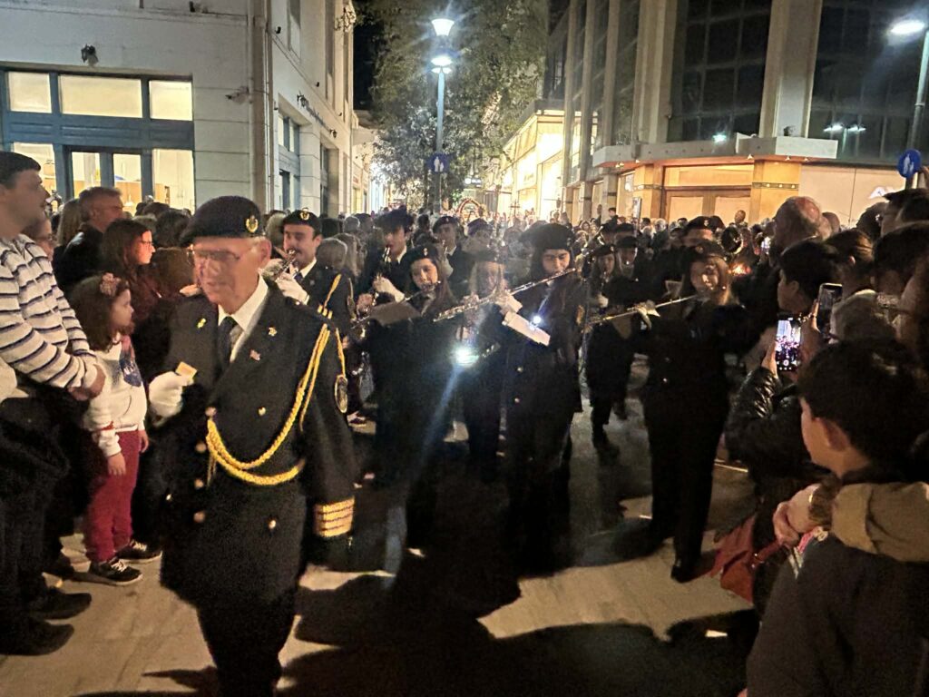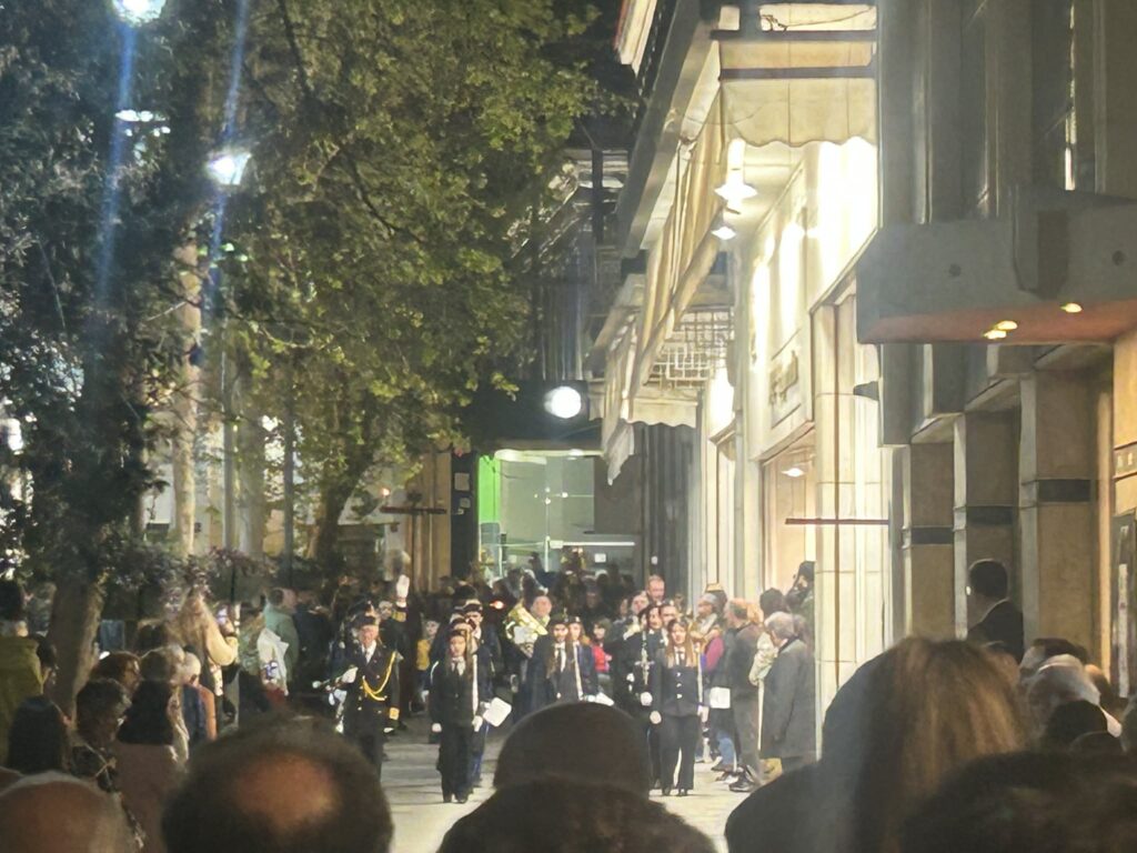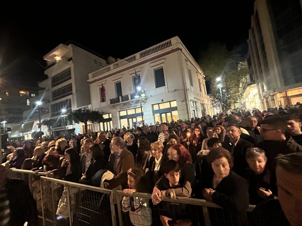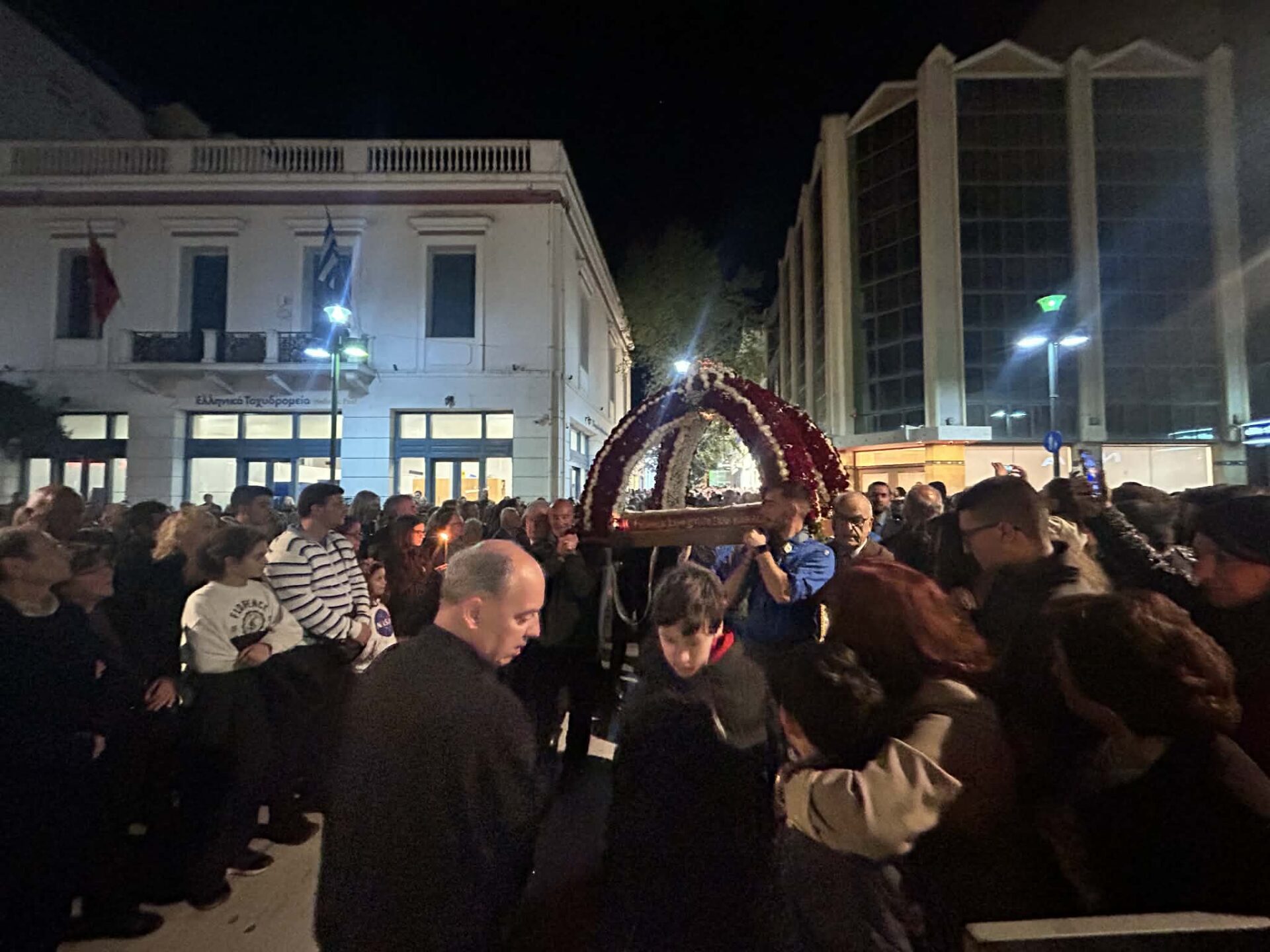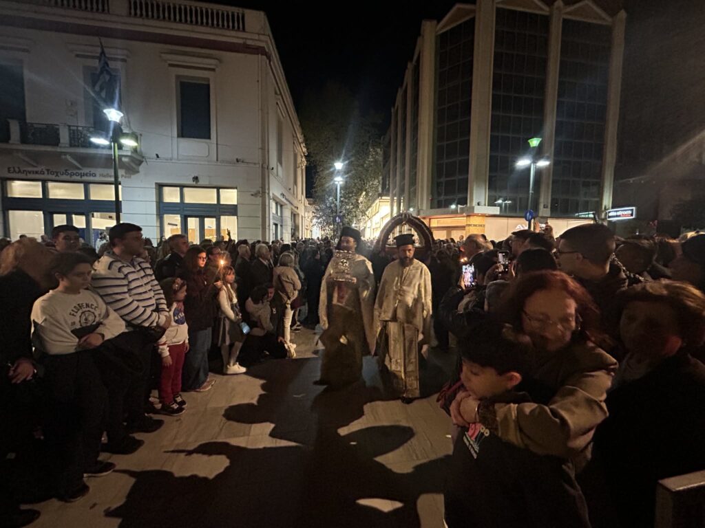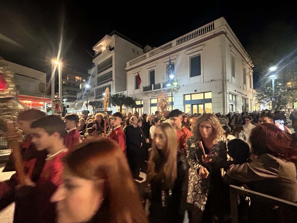 Τη βραδιά της Μεγάλης Παρασκευής, που οι Επιτάφιοι των κεντρικών ναών της πόλης κατέληξαν σε κοινή πορεία προς την κεντρική πλατεία. Πρόκειται για τους Επιτάφιους από τους Ιερούς Ναούς: