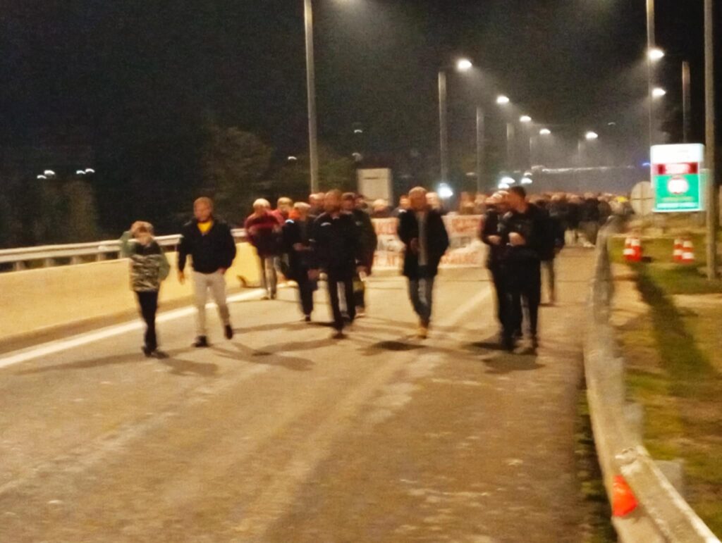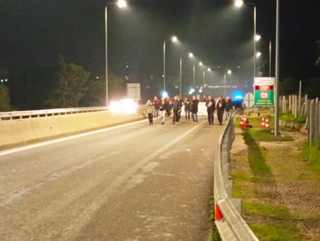Λίγο πριν τις 19:30, οι εκπρόσωποι των συλλόγων αποφάσισαν τη μετάβαση των συγκεντρωμένων στη Νέα Εθνική Οδό Πατρών–Αθηνών, προκειμένου να προχωρήσουν σε ολιγόλεπτο συμβολικό αποκλεισμό στο ρεύμα προς Πάτρα, ως μορφή πίεσης και έκφρασης διαμαρτυρίας.
