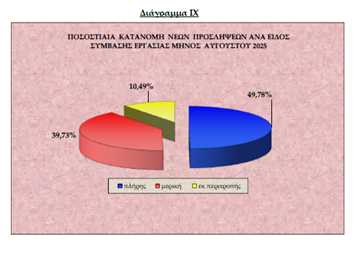 Η εικόνα τού είδους προσλήψεων τον Αύγουστο 2025 αποτυπώνεται στο παρακάτω Διάγραμμα IΧ (σελ. 10 Έκθεσης).