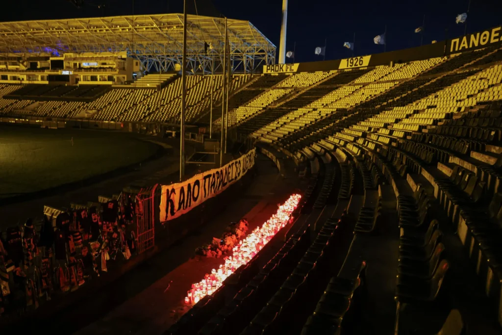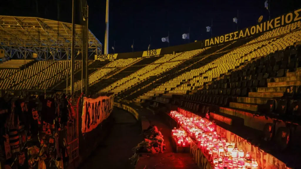 Τα αναμμένα κεριά και τα πανό στην Τούμπα/ REUTERS/Alexandros Avramidis
