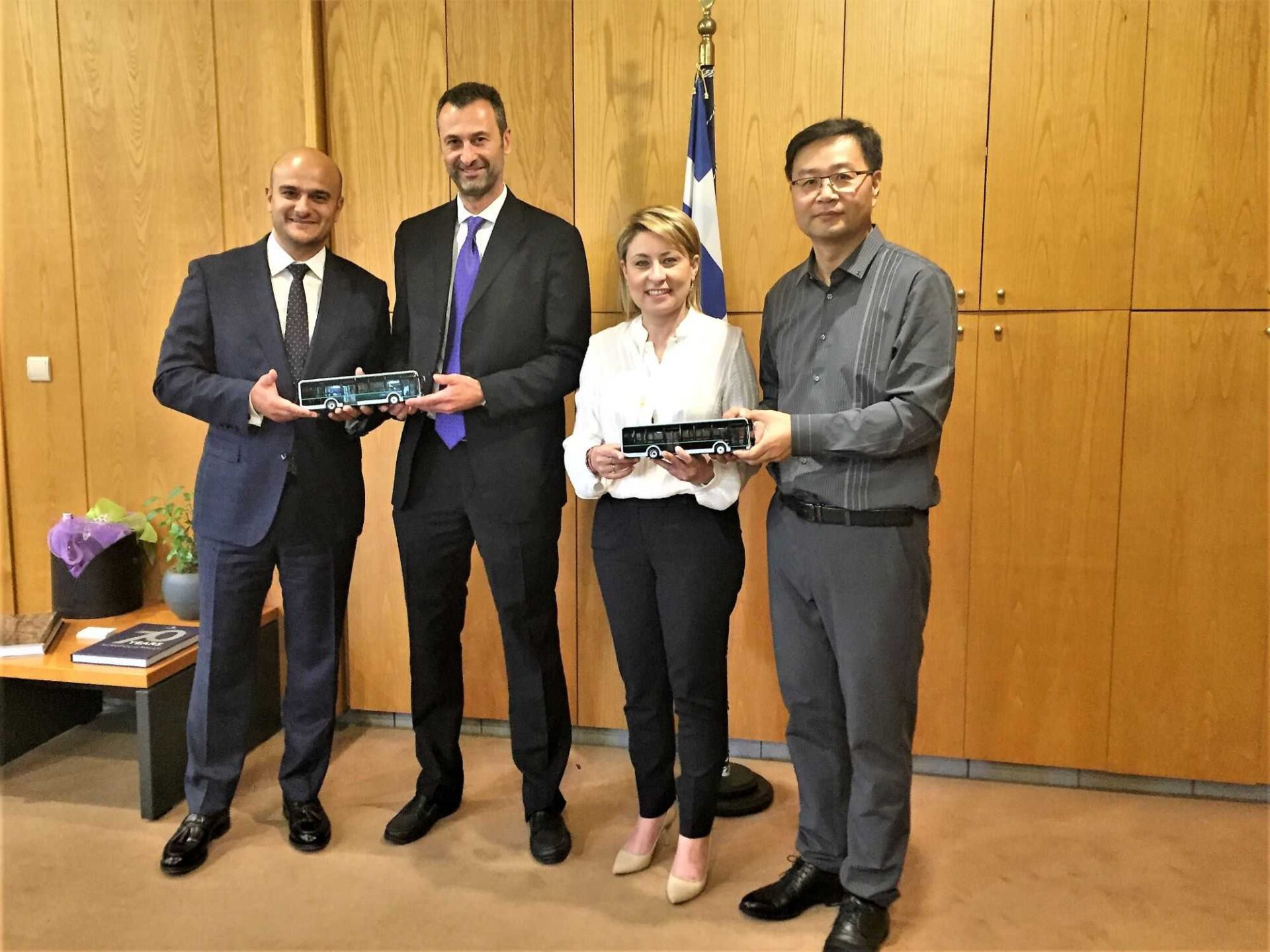 Σε συνέχεια των αποφάσεων που ελήφθησαν στο Υπουργικό Συμβούλιο για την προμήθεια 250 ηλεκτροκίνητων λεωφορείων σε Αθήνα και Θεσσαλονίκη και της συνεδρίασης στην αρμόδια Κοινοβουλευτική Επιτροπή, η Υφυπουργός Υποδομών και Μεταφορών, αρμόδια για τις Μεταφορές, Χριστίνα Αλεξοπούλου συγκάλεσε σύσκεψη, στην οποία συμμετείχαν ο Γενικός Γραμματέας Μεταφορών Γιάννης Ξιφαράς, o Διευθύνων Σύμβουλος Ευρώπης της Yutong Jack Li, η Account Manager Ευρώπης Frances Fan, και οι Διευθυντές Επιχειρησιακής Ανάπτυξης του Ομίλου Κοπελούζου Μιχάλης Κωνσταντίνου και Πάνος Μοσχανδρέου.