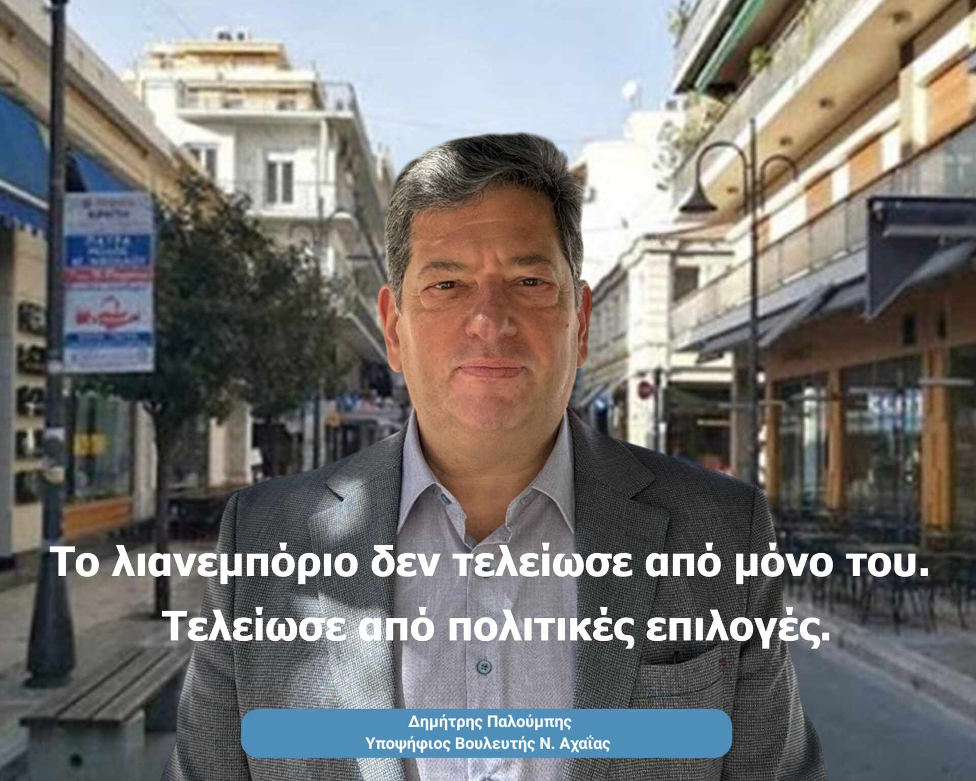 Σε άρθρο του ο υποψήφιος βουλευτής της Ελληνικής Λύσης στην Αχαϊα, Δημήτρης Παλούμπης, τονίζει, ότι: «Το λιανεμπόριο τελείωσε, όχι από μόνο του, αλλά από κυβερνητική επιλογή».