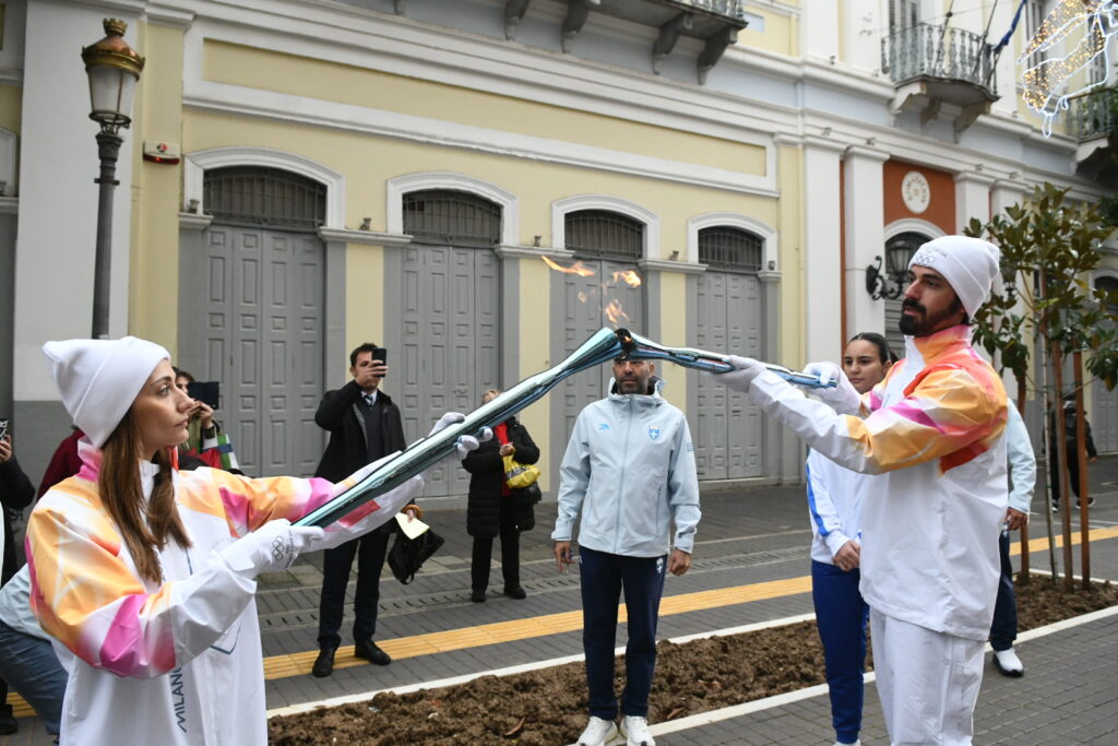 Χαιρετίζοντας στη συνέχεια ο Ιταλός εκπρόσωπος των Ολυμπιακών Αγώνων εξέφρασε τις ευχαριστίες του για την υποδοχή στην πόλη μας και είπε: «Βρίσκομαι εδώ για να διηγηθώ και να γιορτάσω το ταξίδι της Ολυμπιακής Φλόγας στο Μιλάνο – Κορτίνα 2026. Κάθε λαμπαδηδρόμος, στην Ελλάδα όπως και στην Ιταλία, φέρνει μαζί του μία προσωπική ιστορία που συνυφαίνεται με αυτήν των εδαφών από τις οποίες διασχίζει μετατρέποντας την πορεία της Φλόγας σε μία μεγάλη συλλογική ιστορία. Η Ολυμπιακή Φλόγα δεν είναι απλώς ένα αθλητικό σύμβολο είναι ένα παγκόσμιο μήνυμα ειρήνης, ενότητας και ελπίδας».
