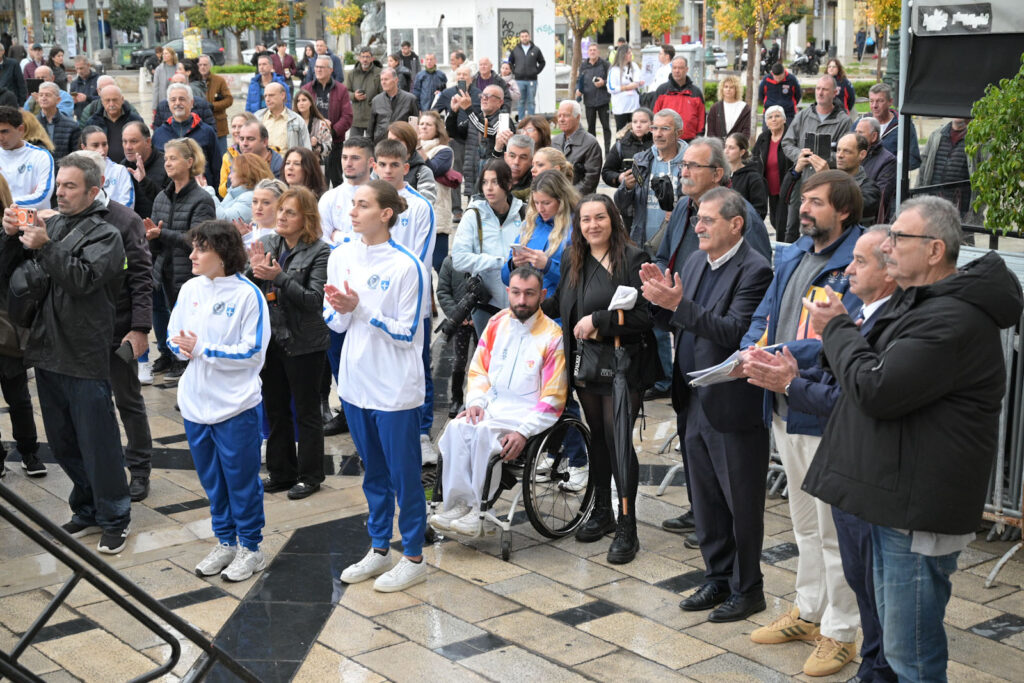 Ο Δήμαρχος Πατρέων Κώστας Πελετίδης υποδέχθηκε εκ μέρους της πόλης τον εκπρόσωποτης Οργανωτικής Επιτροπής των Χειμερινών Ολυμπιακών Αγώνων «Μιλάνο Κορτίνα 2026», ΑλέσσιοΜποτζιάτο, τον εκπρόσωπο της Ελληνικής Ολυμπιακής Επιτροπής, Θωμά Τόκα, εκπροσώπους των Αρχών και των Φορέων της Πάτρας, δεκάδες αθλητές, εθελοντές και μαθητές σχολείων που προσήλθαν παρά τον βροχερό καιρό για να τιμήσουν το παγκόσμιο και διαχρονικό σύμβολο του Ολυμπισμού.