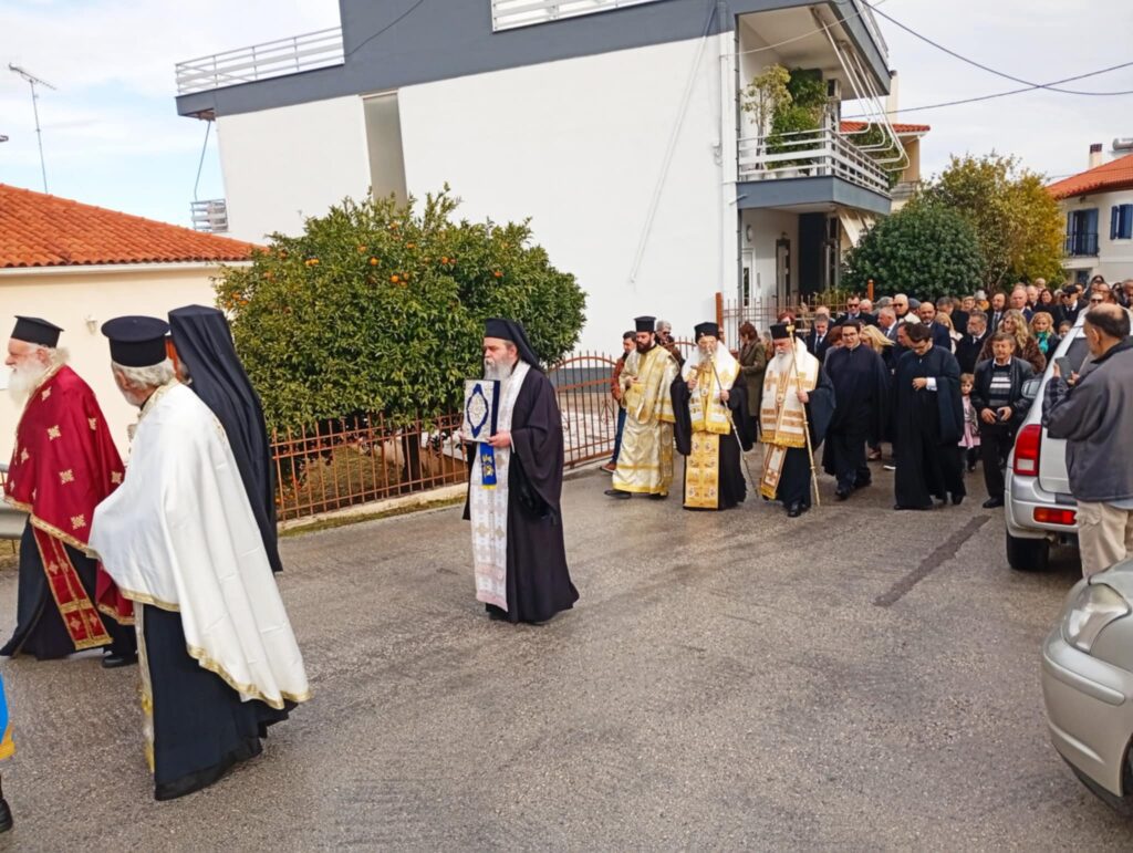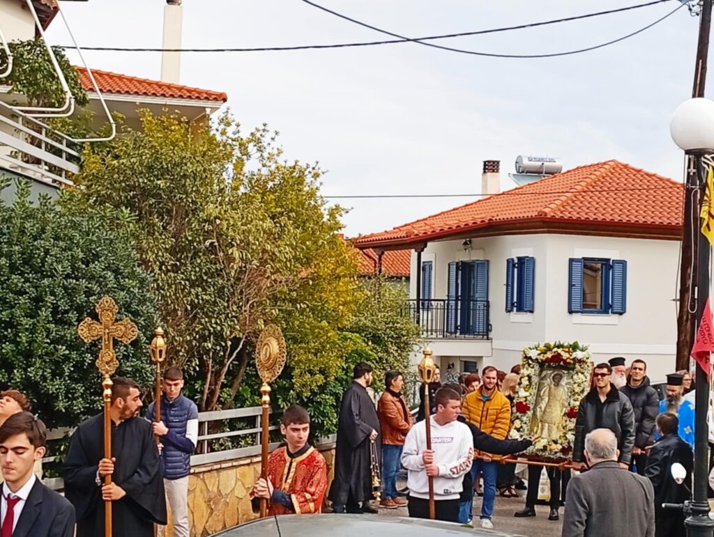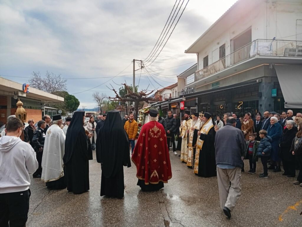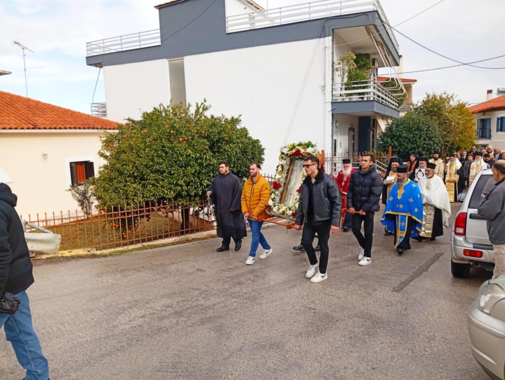 Μετά το πέρας της Θείας Λειτουργίας ακολούθησε η λιτάνευση της Ιεράς Εικόνος του Αγίου Τρύφωνος στους δρόμους της ενορίας. Πιστοί κάθε ηλικίας συνόδευσαν την εικόνα με προσευχές και ύμνους, ζητώντας τη χάρη και την προστασία του Αγίου για τις οικογένειες και τον τόπο τους.