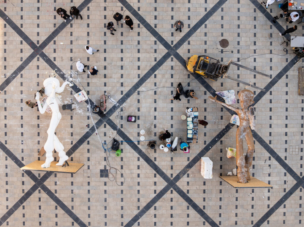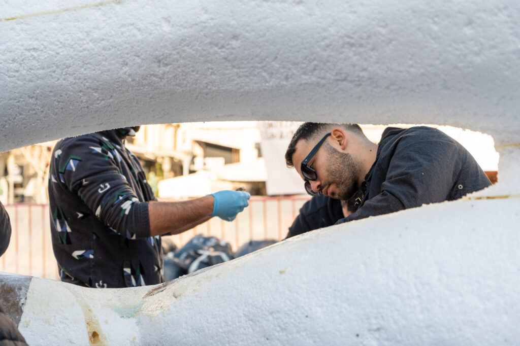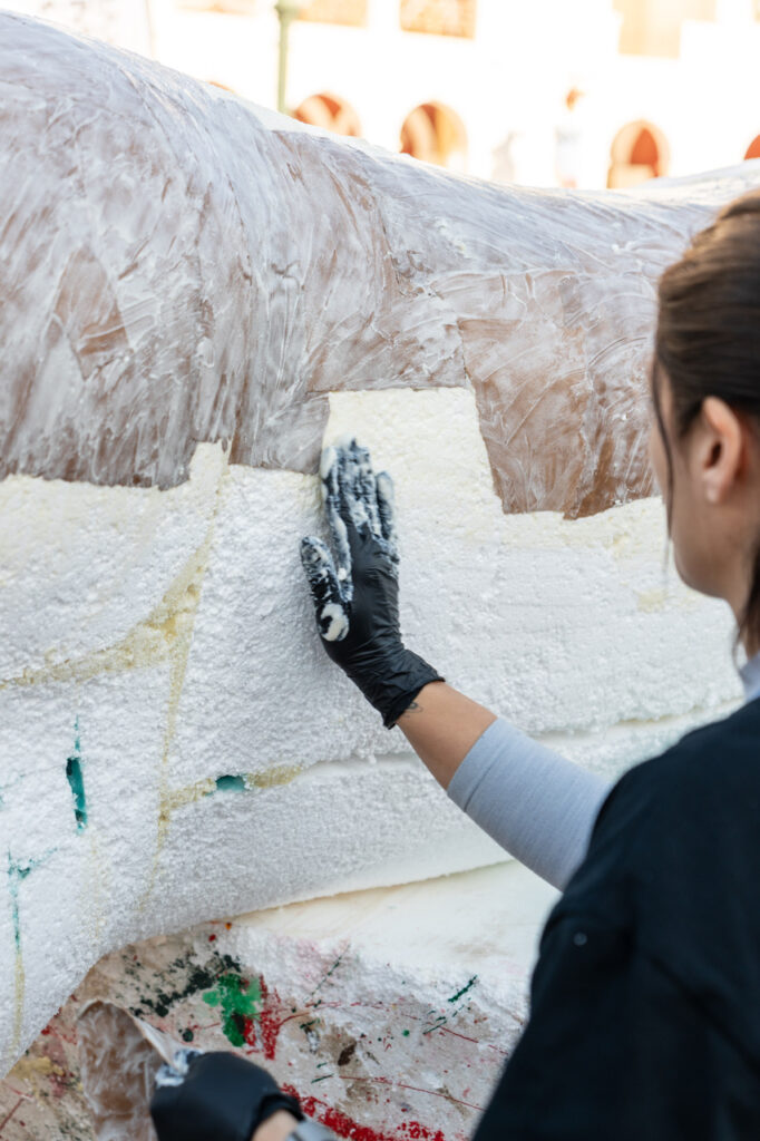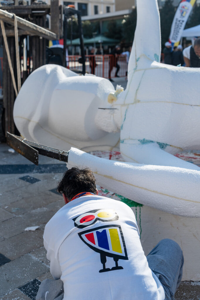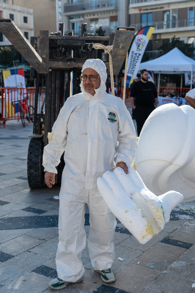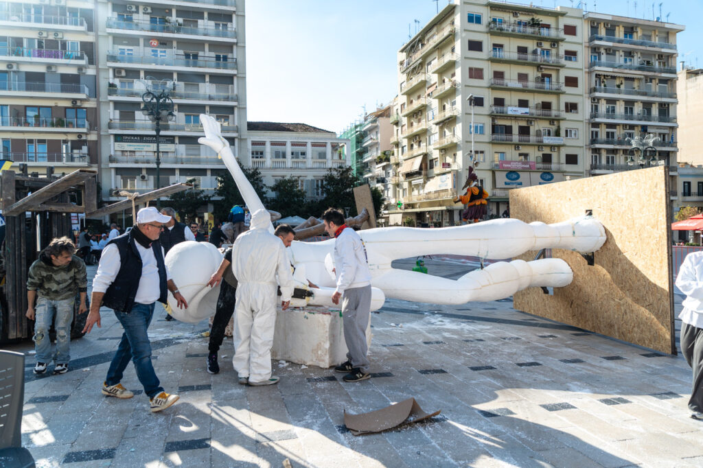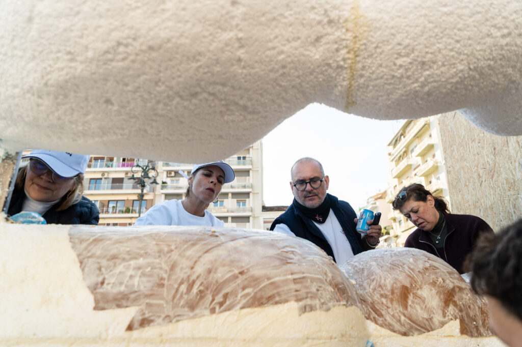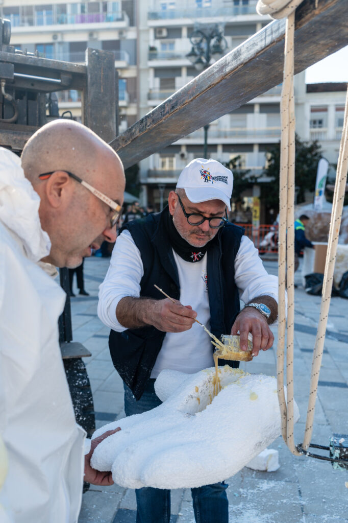 Χτες το μεσημέρι ολοκληρώθηκε το σκάλισμα και το βράδυ το χάρτωμα, ενώ σήμερα τη σκυτάλη πήρε η επιζωγράφιση και η τελική συναρμολόγηση των δύο φιγούρων της τελικής σύνθεσης.