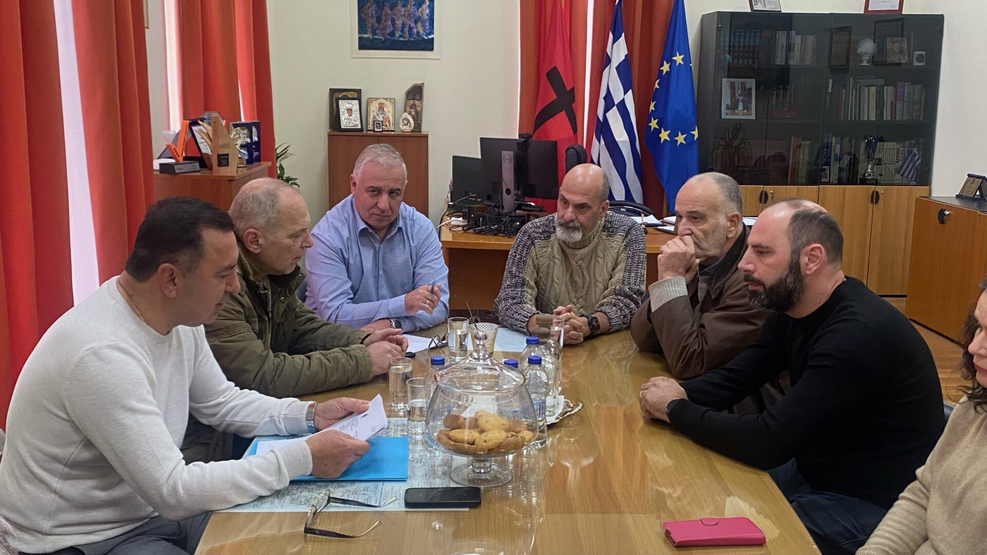 Παρουσία του αναπληρωτή Περιφερειάρχη Δυτικής Ελλάδας κ. Χαράλαμπου Μπονάνου πραγματοποιήθηκε την Τρίτη συνάντηση εργασίας στο γραφείο του Δημάρχου Αιγιαλείας κ. Παναγιώτη Ανδριόπουλου, με αφορμή την ολοκλήρωση της διαδικασίας της έκδοσης των πράξεων αναλογισμού, απαραίτητης για να καθοριστούν οι ιδιοκτησίες που θα αποζημιωθούν για τη διάνοιξη του παραλιακού δρόμου Ακονιά-Λαμπίρι της Δ.Ε. Ερινεού του Δήμου Αιγιαλείας.