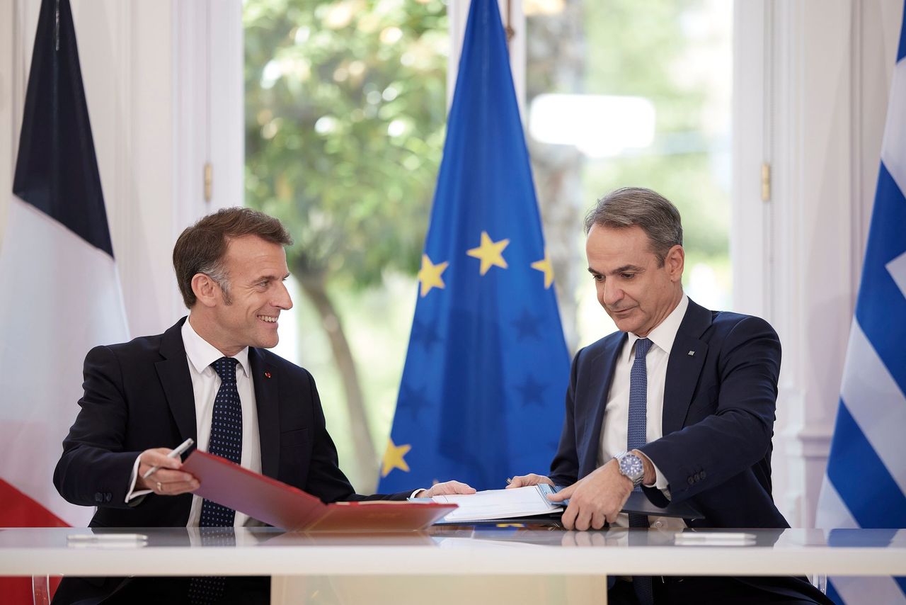 Οι δηλώσεις του Πρωθυπουργού Κυριάκου Μητσοτάκη μετά τη συνάντησή του με τον Πρόεδρο της Γαλλίας Emmanuel Macron και την υπογραφή συμφωνιών μεταξύ Ελλάδας και Γαλλίας, στο Μέγαρο Μαξίμου