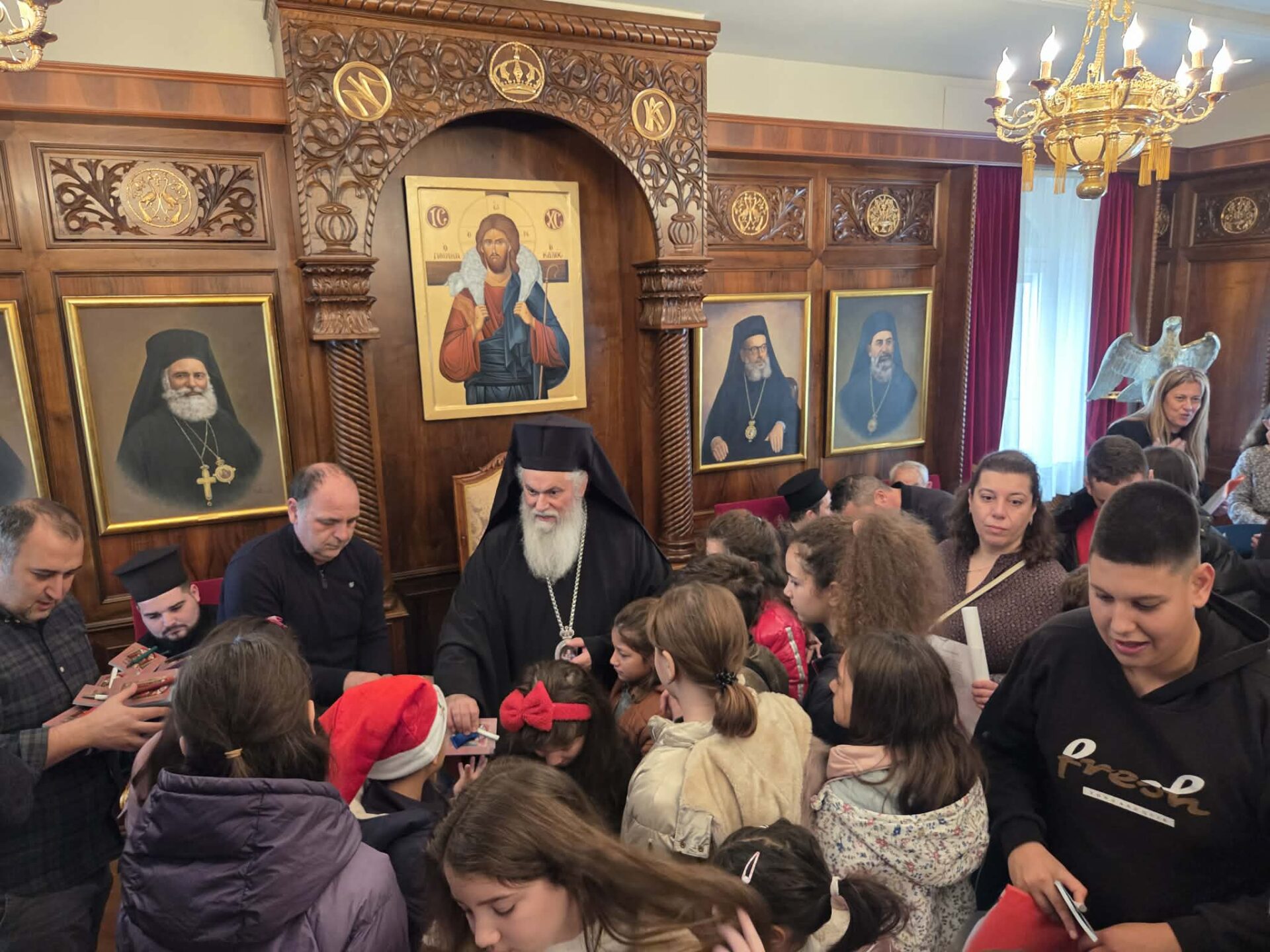 Ο Σεβασμιώτατος Μητροπολίτης Καλαβρύτων και Αιγιαλείας κ. Ιερώνυμος υποδέχθηκε εγκαρδίως και ευχαρίστησε θερμά όλους τους προσελθόντες για την αγάπη τους, αντευχόμενος το σωτήριο Φως της Γεννήσεως του Χριστού να φωτίζει τη ζωή κάθε χριστιανού, να ενισχύει την πίστη, να καλλιεργεί την ενότητα και να χαρίζει ειρήνη, ελπίδα και πνευματική προκοπή στην τοπική μας Εκκλησία.