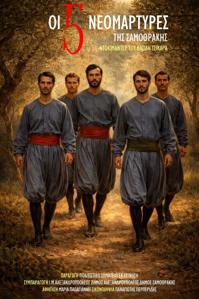 «Οι Πέντε Νεομάρτυρες της Σαμοθράκης» αναδεικνύει την άγνωστη πτυχή των πέντε νεομαρτύρων (Γεώργιος, Μανουήλ, Θεόδωρος, Γεώργιος και Μιχαήλ) που μαρτύρησαν μετά την ιστορία, την επανάσταση και το ολοκαύτωμα του 1821 στο νησί,