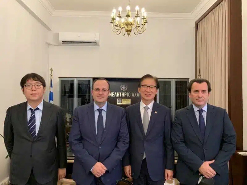 Τον πρόεδρο του Επιμελητηρίου Αχαΐας κο Πλάτωνα Μαρλαφέκα επισκέφτηκε την Πέμπτη 25 Νοεμβρίου 2021 η Α.Ε πρέσβης της Δημοκρατίας της Κορέας κος Τζονγκ Ιλ Λι μαζί με τον 2o γραμματέα κο Μιντζούν Τσοι και τον επίτιμο πρόξενο της Κορέας στην Αχαΐα κο Σπύρο Φιλιππάκη.