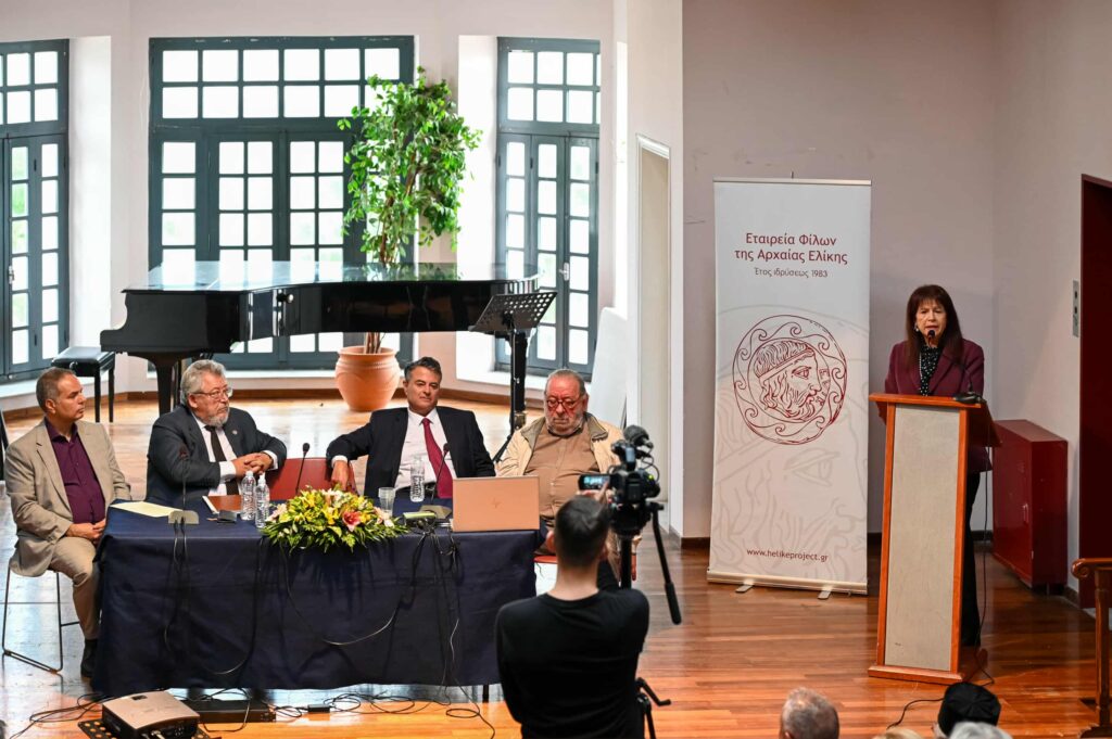 Τον κύκλο των παρουσιάσεων άνοιξε με κεντρική εισήγηση η Ντόρα Κατσωνοπούλου που παρουσίασε με power point το πολυδιάστατο και πρωτοποριακό επιστημονικό έργο που έχει συντελεστεί από το 1988 στην Περιοχή της Αρχαίας Ελίκης. Η ομιλήτρια, με ειδική αναφορά στα σημεία-σταθμούς της διεπιστημονικής έρευνας που οδήγησε στην ανακάλυψη της Αρχαίας Ελίκης και έλυσε έτσι ένα επιστημονικό αίνιγμα δεκαετιών της αρχαιολογικής επιστήμης, μετέφερε στο ακροατήριο με ξεκάθαρο και ανάγλυφο τρόπο το επιστημονικά τεκμηριωμένο από τις έρευνες και ανασκαφές ιστορικό παρελθόν της Αρχαίας Ελίκης και την ιδιαίτερη σημασία των πλούσιων ευρημάτων που φανερώνουν την διαχρονική αξία της για μια πορεία που υπερβαίνει χρονικά τα 3500 χρόνια. Παράλληλα, επεσήμανε τις αρνητικές συνέπειες για τον τόπο, της επί 12 έτη αναιτιολόγητης διακοπής των ανασκαφών και την εν γένει απαξιωτική διαχείριση των ευρημάτων εκ μέρους των εκπροσώπων του Υπουργείου Πολιτισμού.