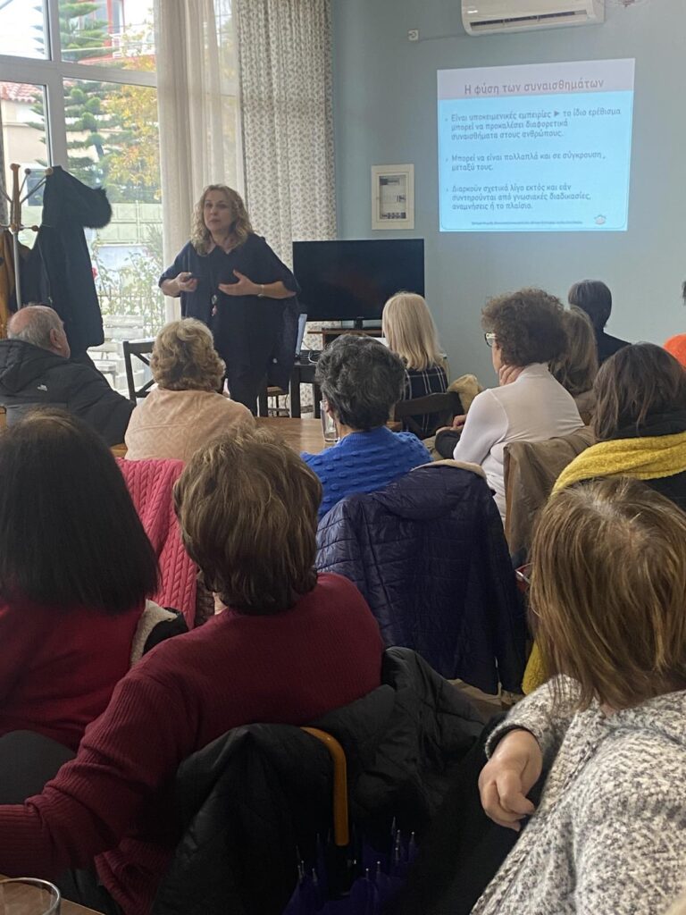 Την Πέμπτη 22 Ιανουαρίου 2026 πραγματοποιήθηκε στην αίθουσα του ΚΑΠΗ Συνοικισμού στο Αίγιο εργαστήρι με τίτλο «Τα πολύτιμα μας συναισθήματα».