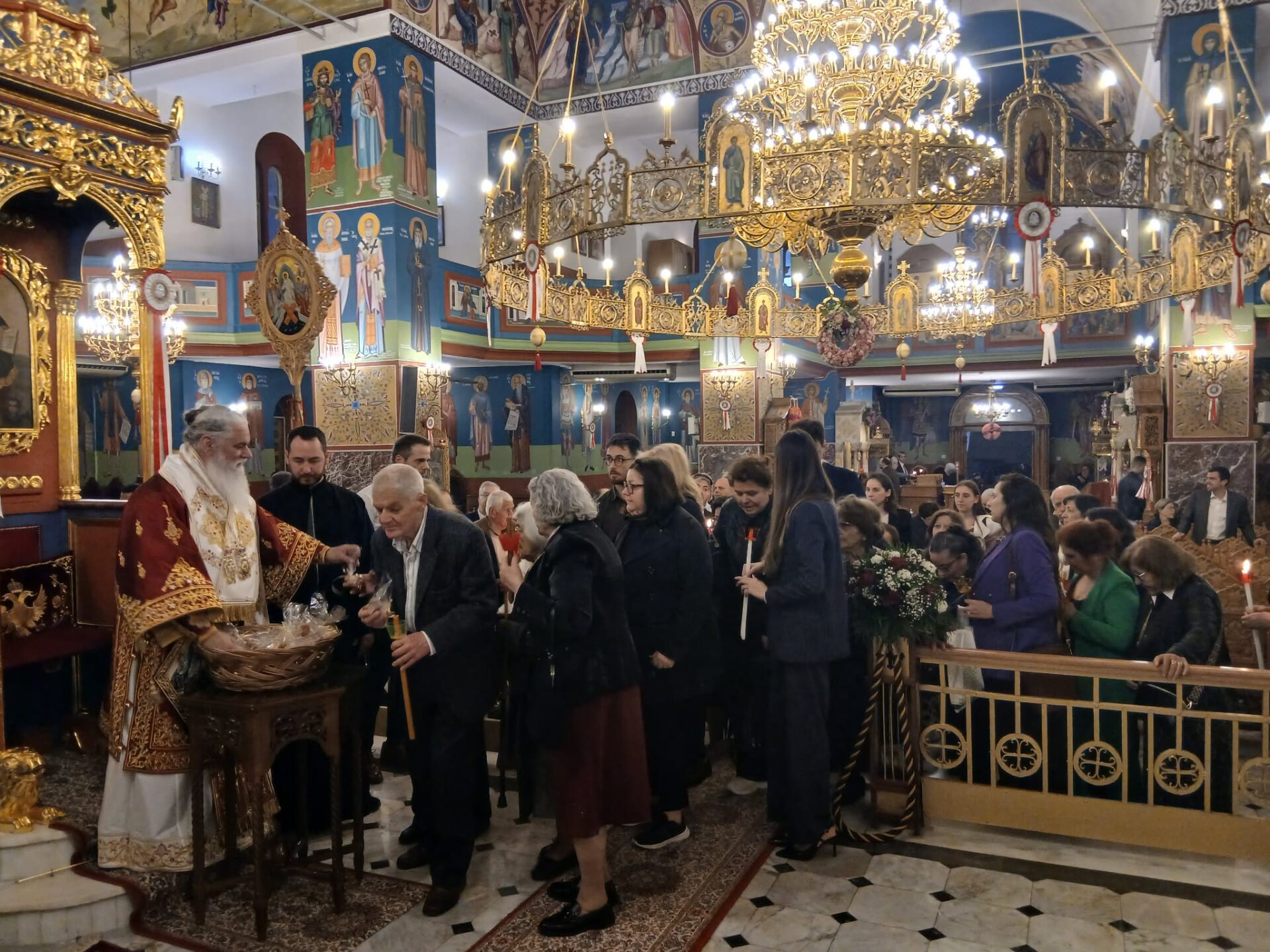 Η Ακολουθία του Εσπερινού της Αγάπης, ολοκληρώθηκε με πατρικές αναστάσιμες ευχές του Σεβασμιωτάτου Μητροπολίτου μας κ. Ιερωνύμου προς τους ευλαβεστάτους Ιερείς, τους εντίμους Άρχοντες και τον χριστεπώνυμο λαό, προτρέποντας όλους να παραμείνουν μέτοχοι του Αναστάσιμου Φωτός στην καθημερινή τους ζωή, ενώ στη συνέχεια ο Σεβασμιώτατος διένειμε σε όλους, ως ευλογία, το παραδοσιακό πασχαλινό κόκκινο αυγό και κουλούρι.