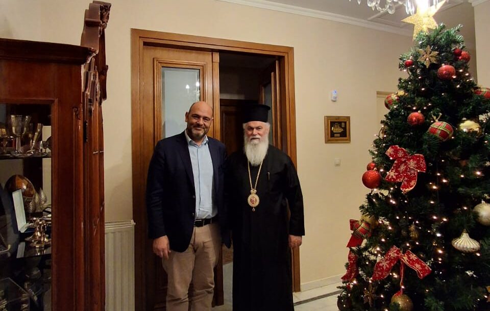 Τον Σεβασμιώτατο Μητροπολίτη Καλαβρύτων και Αιγιαλείας κ. Ιερώνυμο επισκέφθηκε σήμερα, Σάββατο 20 Δεκεμβρίου 2025, ο Υφυπουργός Πολιτισμού κ. Ιάσων Φωτήλας, εθιμοτυπικώς εν όψει των εορτών της Θείας Επιφανείας.
