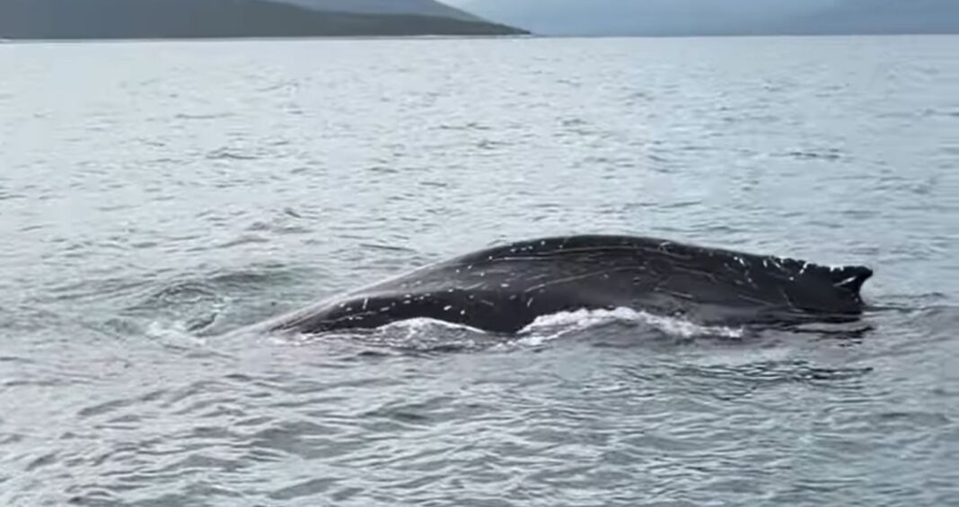 Σε βίντεο που δημοσιεύτηκε στο YouTube, και συγκεκριμένα στο κανάλι «No Kid No Fish», φαίνεται μία φάλαινα να κολυμπάει δίπλα στο αλιευτικό σκάφος.