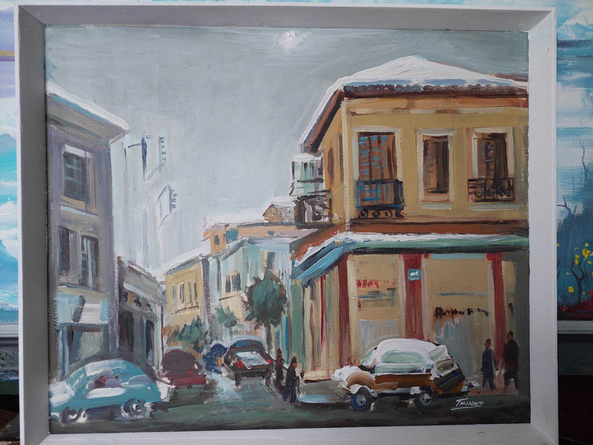 Η έκθεση, που είναι βασισμένη σε εργασία τριάντα χρόνων, περιλαμβάνει πάνω από εβδομήντα έργα, από τα οποία τα περισσότερα είναι τοπία εμπνευσμένα από τις ομορφιές της πόλης του Αιγίου αλλά και της ευρύτερης περιοχής και παρουσιάζουν διάφορα στιγμιότυπα, όπως τον υδροβιότοπο της Αλυκής (ένα από τα πιο αγαπημένα τοπία του καλλιτέχνη), το Αίγιο χιονισμένο, την εκκλησία του Αγίου Ανδρέα, το Αρχαιολογικό Μουσείο Αιγίου, τοπία από τη διαδρομή Αίγιο-Καλάβρυτα, κ.α.