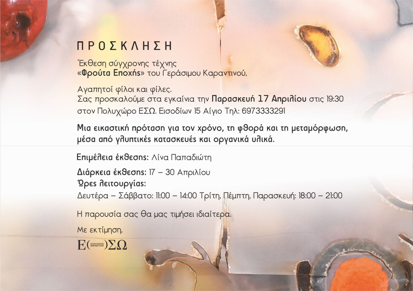 Έκθεση Σύγχρονης Τέχνης «Φρούτα Εποχής» Γεράσιμος Καραντινός | Πολυχώρος ΕΣΩ