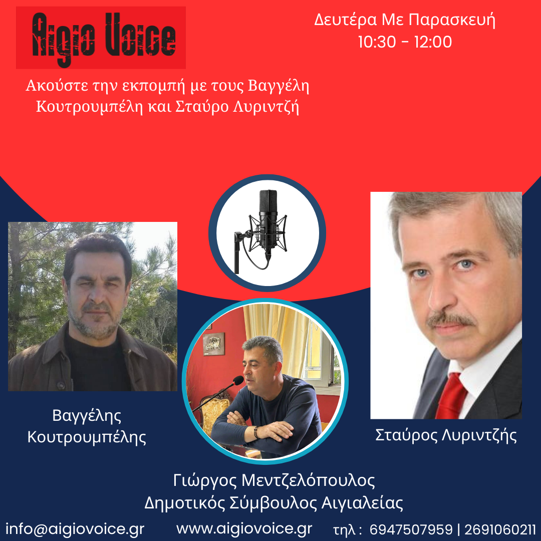 Στην ραδιοφωνική εκπομπή «Φωνή της Αιγιάλειας» του Aigio Voice Radio μίλησε ο δημοτικός σύμβουλος της μείζονος αντιπολίτευσης του Δήμου Αιγιαλείας, Γιώργος Μεντζελόπουλος, ασκώντας κριτική στη λειτουργία της δημοτικής αρχής και αναδεικνύοντας τα βασικά προβλήματα της περιοχής.