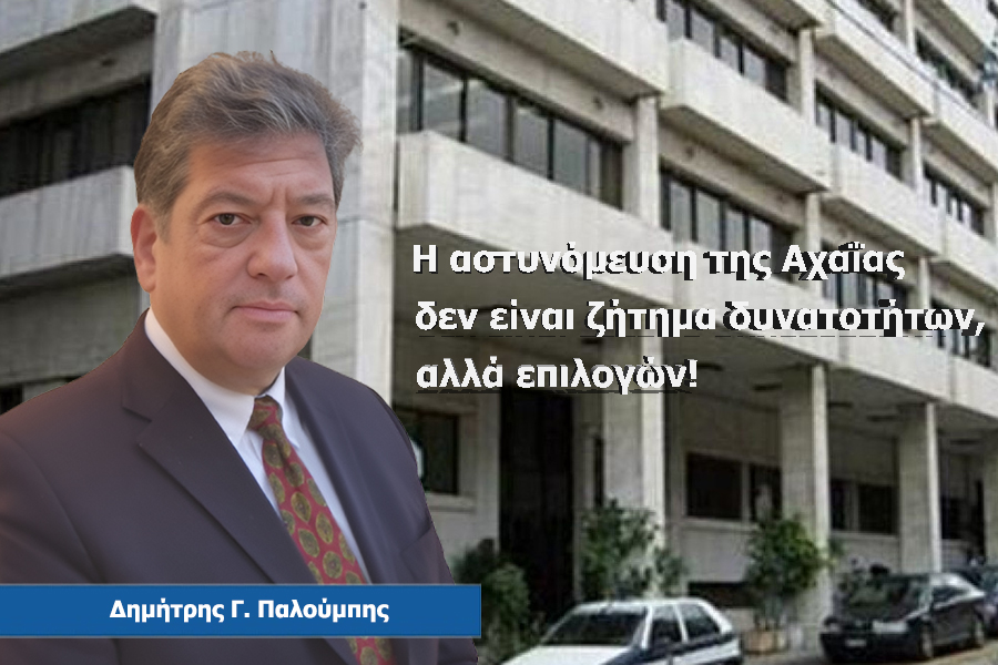 Μέσα σε αυτό το πλαίσιο, πρόσφατα βουλευτής της Νέας Δημοκρατίας από την Αχαΐα διαβίβασε στη Βουλή υπόμνημα ζητώντας ενίσχυση του αστυνομικού δυναμικού μέσω των τακτικών μεταθέσεων του 2026. Η πράξη αυτή είναι, αναμφίβολα, θεσμική.