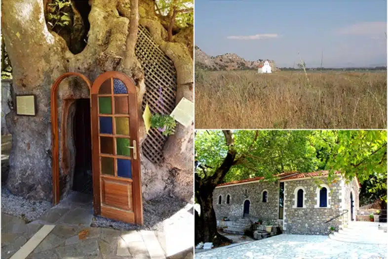 Σε μια καταπράσινη τοποθεσία της κοιλάδας του Κερυνίτη, με άφθονα και κρύα νερά, βρίσκεται το εκκλησάκι της “Παναγίας της Πλατανιώτισσας” που έχει σχηματιστεί μέσα στο κοίλωμα (κουφάλα) ενός τεράστιου πλατάνου, ο οποίος προήλθε από τρία πλατάνια που φύτρωσαν μαζί, και με την πάροδο του χρόνου ενώθηκαν και δημιούργησαν το αξιοθαύμαστο αριστούργημα της φύσης.