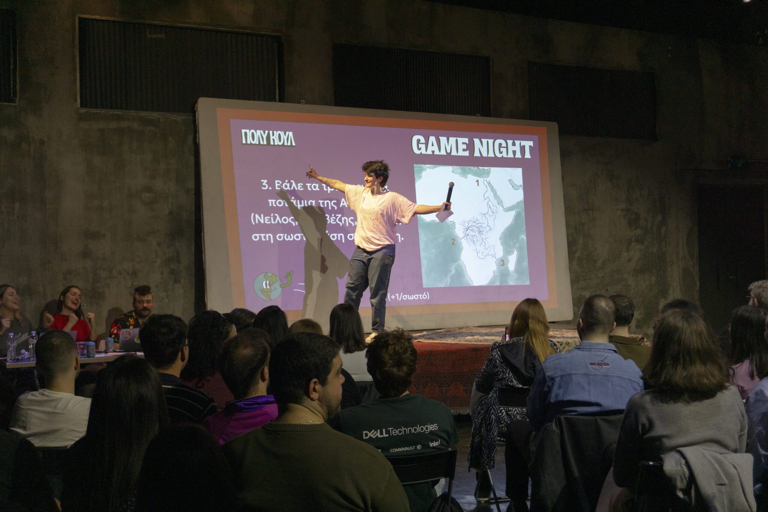 Το παιχνίδι γνώσεων ή αλλιώς game night είναι ένα κουίζ (και όχι μόνο) με παρουσιάστρια τη Σμαράγδα (αυτή από το TikTok), που απευθύνεται σε όλα τα πλάσματα, όλων των ηλικιών (παιδιά με τη συνοδεία ενηλίκων, εφηβάκια, φοιτητές και ενήλικες)! Μόνοι ή με παρέα, πάρτε θέση και δοκιμάστε τις γνώσεις σας. Οι ερωτήσεις είναι αναπάντεχες και πριν το καταλάβετε έχουν περάσει 2+ ώρες γεμάτες γεωγραφικά φακτς και πολύ γέλιο! Δεν χρειάζεται να έχετε καμία γνώση γεωγραφίας για να περάσετε καλά στην εκδήλωση, μόνο όρεξη για να μάθετε πράγματα! Αν βέβαια έχετε και τις γνώσεις, σας περιμένουν μοναδικά δώρα και πολύ χειροκρότημα (φορέστε τα καλά σας γιατί θα ανεβείτε στη σκηνή)!