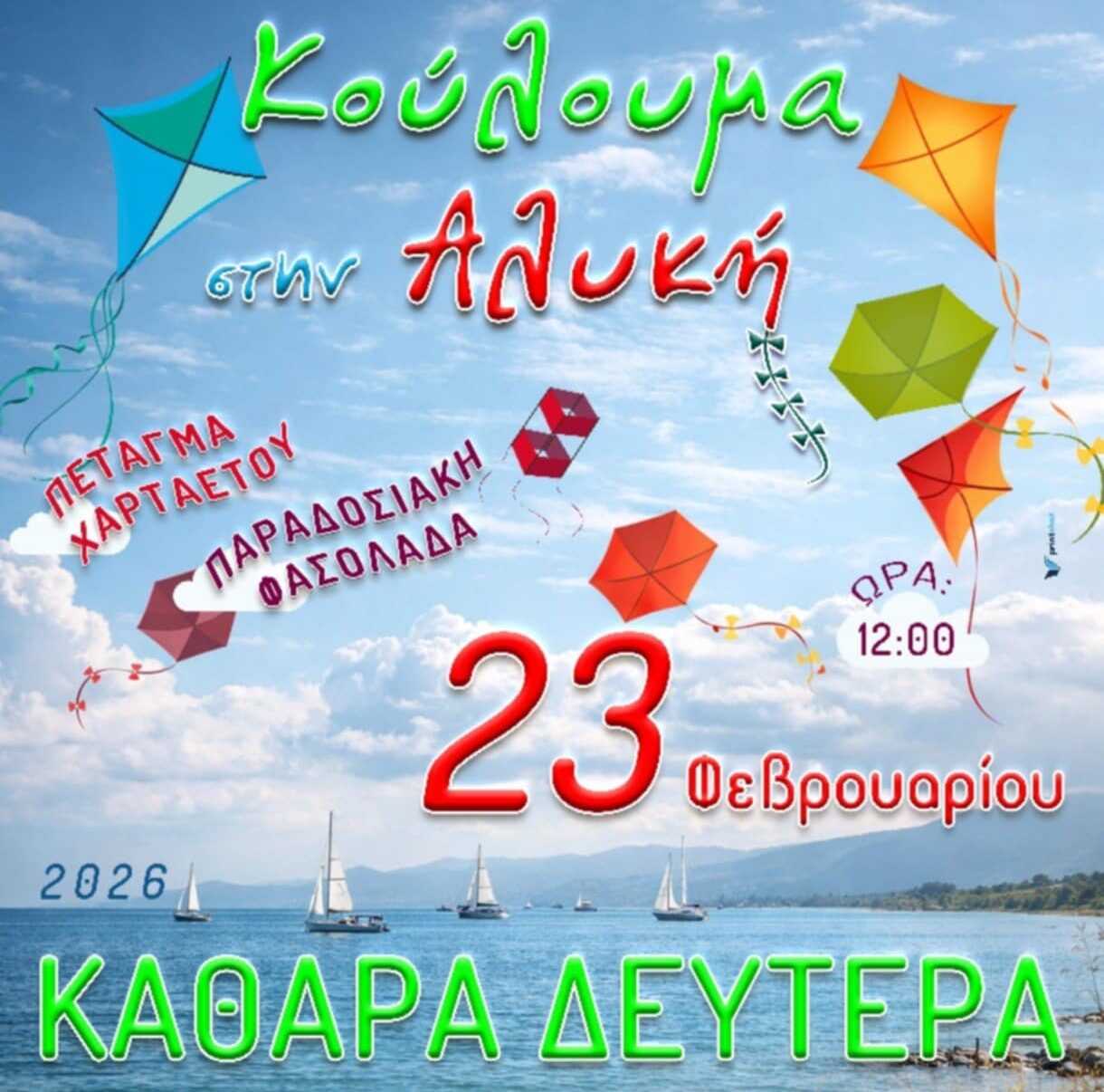 Ο Περιβαλλοντικός – Πολιτιστικός Σύλλογος Αλυκής Αιγίου «Ο Άγιος Νικόλαος» προσκαλεί μικρούς και μεγάλους σε μια ξεχωριστή γιορτή γεμάτη χρώμα, μουσική και παράδοση, την Καθαρά Δευτέρα 23 Φεβρουαρίου 2026, στην Κεντρική Παραλία Αλυκής.