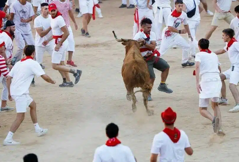 Τηλεοπτικά πλάνα έδειξαν έναν ταύρο να πετάει επανειλημμένα έναν δρομέα πάνω στα ξύλινα φράγματα στην άκρη του ρινγκ και στη συνέχεια να τρυπάει έναν άλλο στο πίσω μέρος του ποδιού. Το θέαμα κράτησε λίγο περισσότερο από τρία λεπτά καθώς εκατοντάδες δρομείς, κυρίως άνδρες, έτρεξαν μανιωδώς μπροστά και μαζί με έξι ταύρους που μάχονταν καθώς περνούσαν σε μια διαδρομή 929 αυλών στους πλακόστρωτους δρόμους αυτής της βόρειας πόλης.