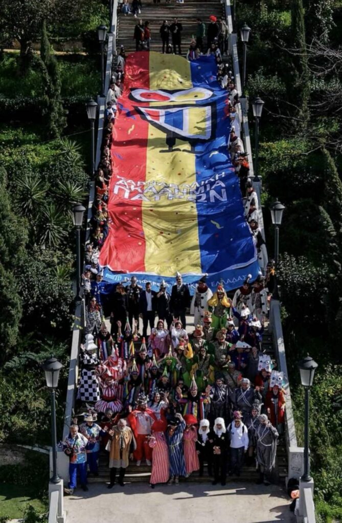Στη συνέχεια, οι προσκεκλημένοι επισκέφθηκαν το Ρωμαϊκό Ωδείο της Πάτρας, απολαμβάνοντας μία σύντομη ξενάγηση και έπειτα συμμετείχαν στην επίσημη φωτογράφιση των μελών της Καρναβαλικής Ακαδημίας στις σκάλες της οδού Αγίου Νικολάου, σε μία συμβολική στιγμή ενότητας και φιλίας.