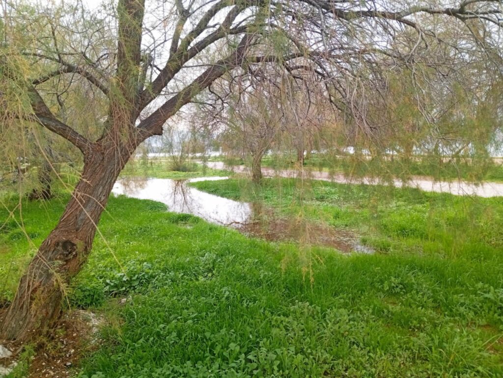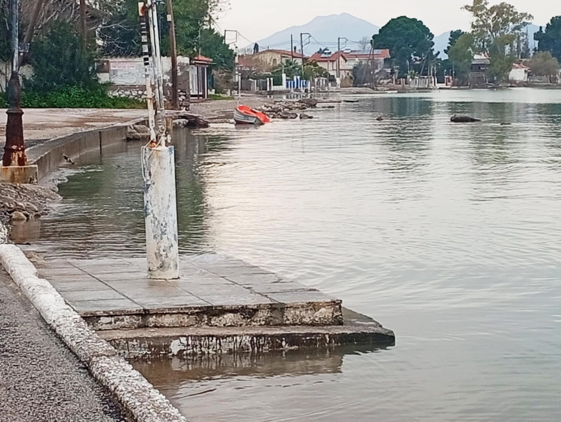 Στην παραλία Πλατάνου ο δρόμος έχει κοπεί, ενώ πλημμυρισμένο παραμένει τμήμα στην περιοχή Μάτι Άκολης.
