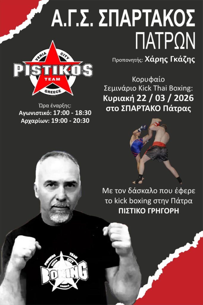 Στην Πάτρα ο Δάσκαλος ΓΡΗΓΟΡΗΣ ΠΙΣΤΙΚΟΣ | Για ένα μοναδικό ανοικτό Σεμινάριο KICK THAI BOXING, στον Σπάρτακο Πατρών (22 Μαρτίου)