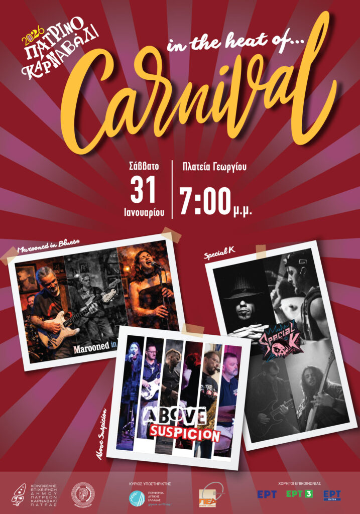 «In the heat of … Carnival» είναι ο τίτλος της ανοικτής συναυλίας που διοργανώνει η ΚΕΔΗΠ-Καρναβάλι Πάτρας το Σάββατο 31 Ιανουαρίου στις 7μμ στην πλατεία Γεωργίου Α΄.