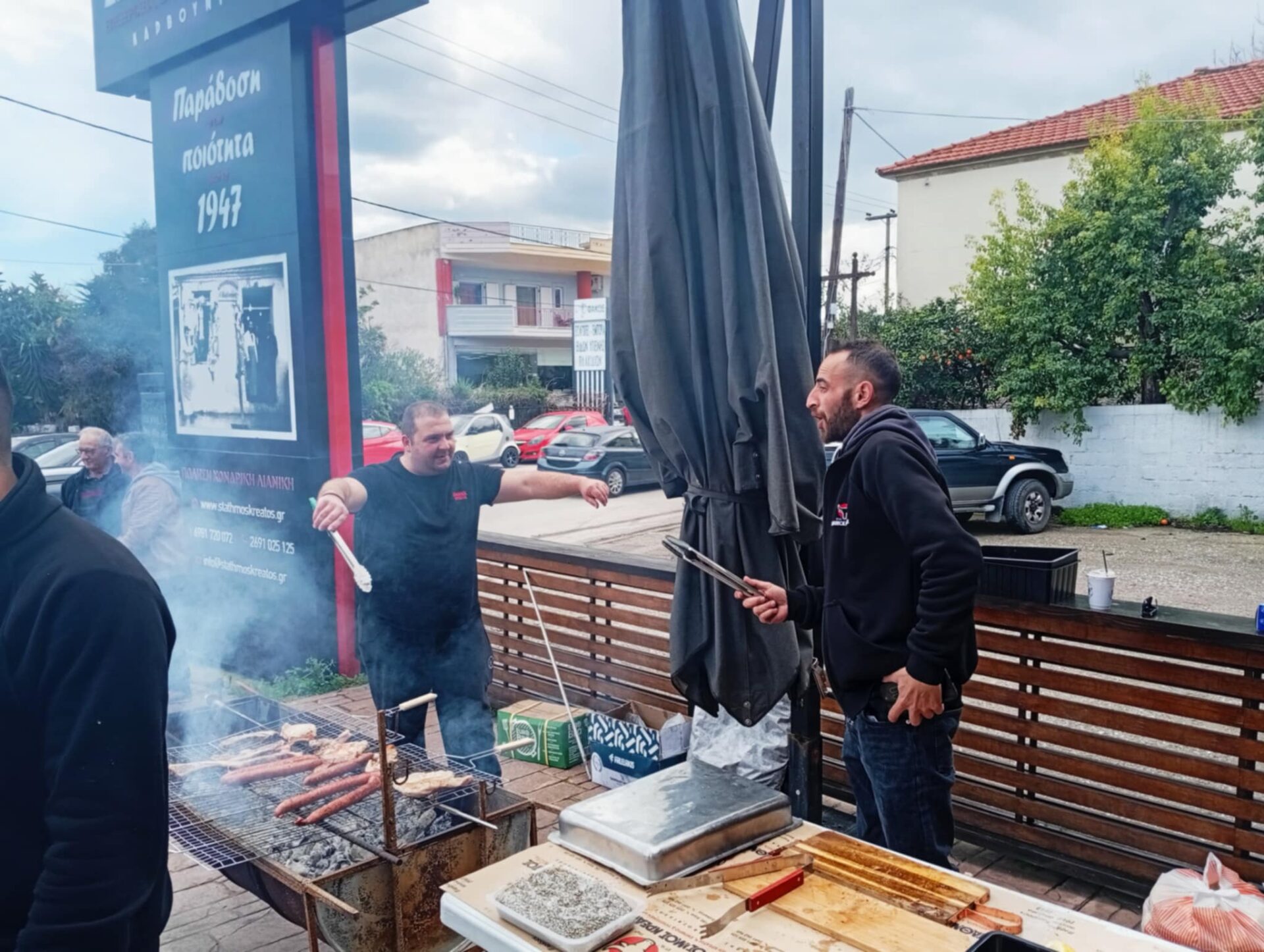 Στον Σταθμό κρέατος του κυρίου Καρβουνιάρη δεν υπήρχε περίπτωση να μην στηθεί η ψησταριά…