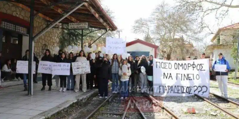 Η μαθητική κοινότητα των Καλαβρύτων, σε μια συμβολική όσο και συγκινητική κίνηση, συγκεντρώθηκε στην κεντρική πλατεία των Καλαβρύτων για να διαμαρτυρηθεί, για την σιδηροδρομική τραγωδία στα Τέμπη, που έχασαν τη ζωή τους δεκάδες άνθρωποι.