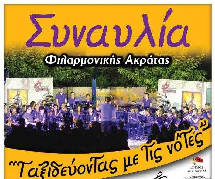 Ο Μουσικοχορευτικός Σύλλογος «Φιλαρμονική» Ακράτας προσκαλεί τους φίλους του και όσους αγαπάνε τη μουσική, στις ετήσιες καλοκαιρινές συναυλίες του που θα πραγματοποιηθούν την Τετάρτη 31 Ιουλίου 2024 στον πεζόδρομο της Κανελλοπούλου στην Ακράτα, όπου θα γίνει από την Κοινότητα Ακράτας και τον Σύλλογο μας και η βράβευση του συμπολίτη μας κ. Γιαννακόπουλου Χαράλαμπου για τη σπουδαία προσφορά του στον τόπο μας, και την Πέμπτη 1 Αυγούστου 2024 στο 2ο Δημοτικό Σχολείο Ακράτας στο Κράθιο, υπό την διεύθυνση του αρχιμουσικού Χρήστου Ασημακόπουλου . Το πρόγραμμα περιλαμβάνει γνωστές μελωδίες από πολλά είδη μουσικής και ξεκινάει στις 9.15 το βράδυ.