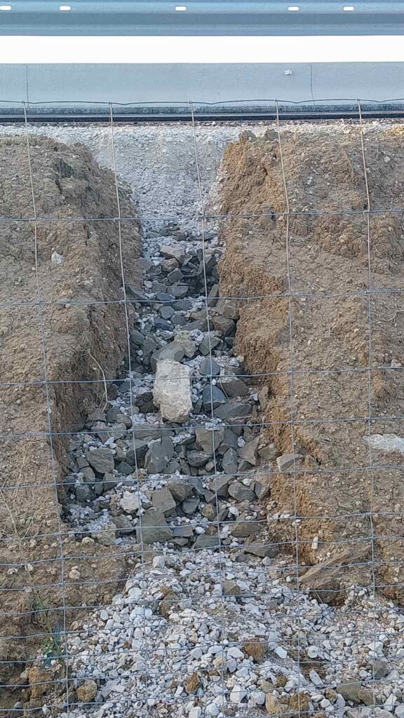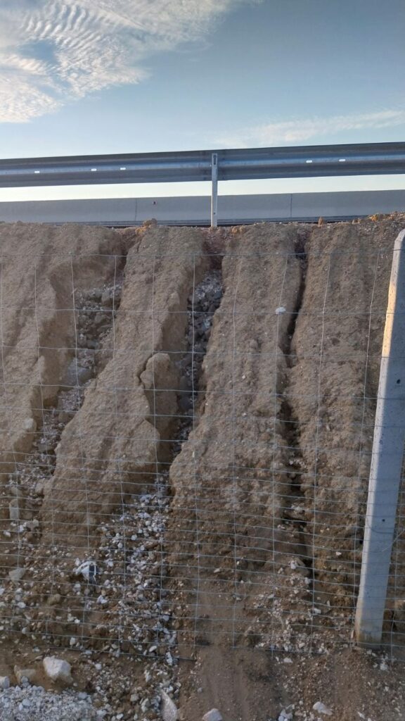 Στις τάφρους και στα πρανή παρατηρείται ανυπαρξία αντιπλημμυρικών έργων, πλημμυρισμένα χαντάκια, και εγείρεται σοβαρό ερώτημα αν έχει χρησιμοποιηθεί υλικό τύπου 3Α, όπως προβλέπεται από τις ευρωπαϊκές προδιαγραφές για αποστράγγιση.