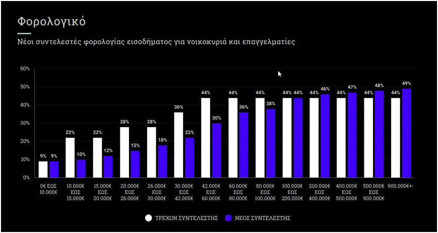 • Νέα φορολογική κλίμακα: Μείωση συντελεστών στο 99% των φορολογούμενων. Αφορολόγητο ως τα 10.000€