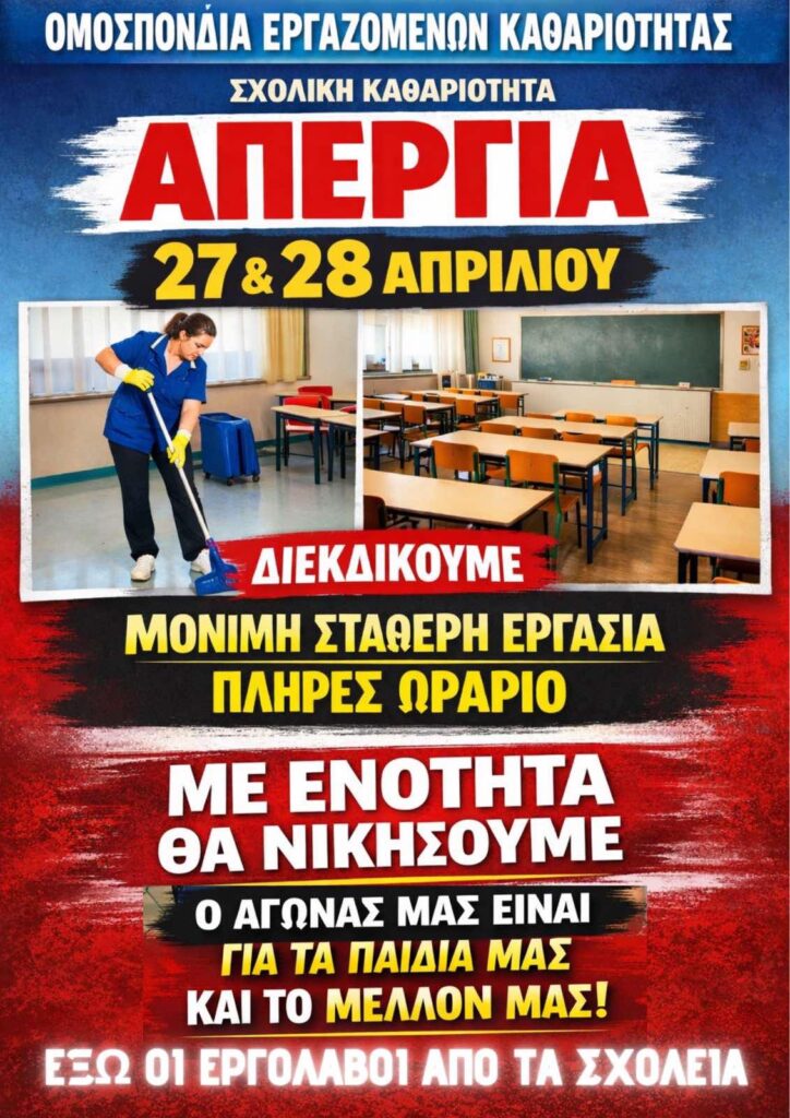 Οι εργαζόμενοι και οι εργαζόμενοι στην καθαριότητα των σχολικών μονάδων της χώρας, οι άνθρωποι που βρίσκονται στην πρώτη γραμμή για την ασφάλεια και την υγιεινή των παιδιών μας, λένε «ως εδώ». Παρά την πολυετή προσφορά μας,