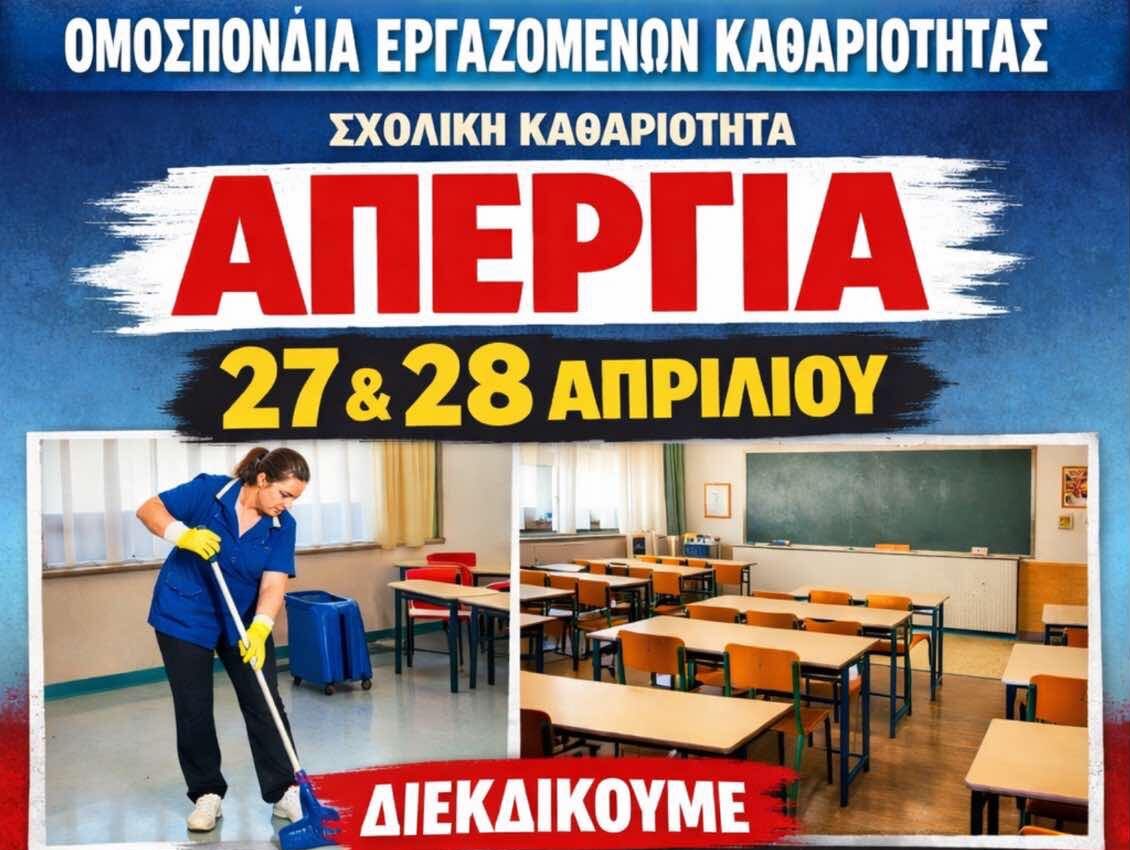 Ο κλάδος της σχολικής καθαριότητας δεν ζητά ελεημοσύνη, απαιτεί δικαιοσύνη. Η δημόσια υγεία στα σχολεία περνάει μέσα από την εργασιακή αξιοπρέπεια των