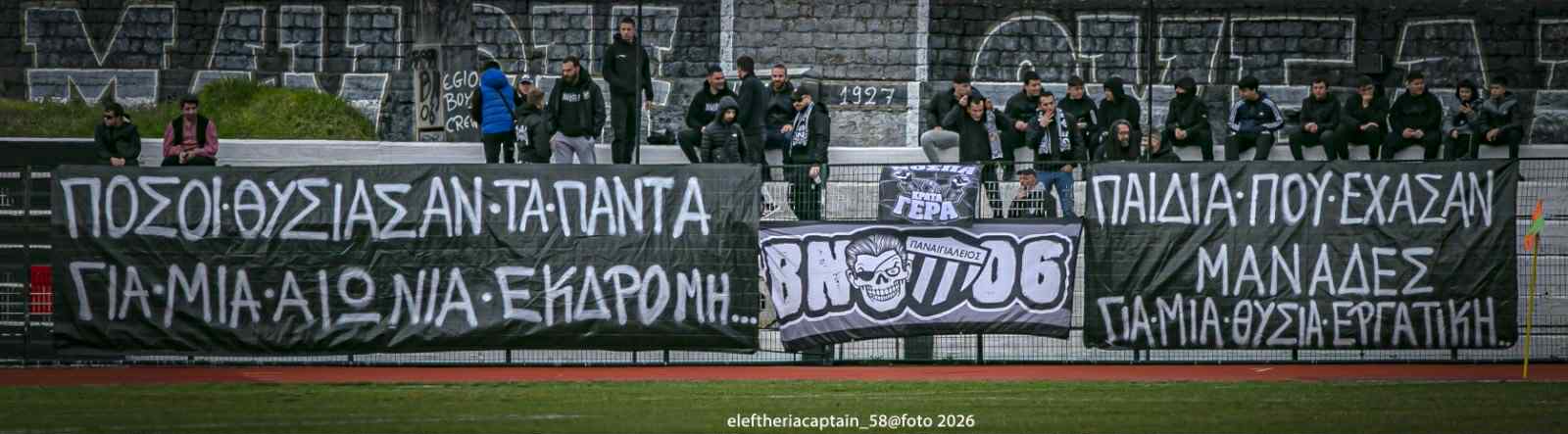 Στις κερκίδες, οι bianconeri, οι οργανωμένοι φίλοι του Παναιγιαλείου, ανάρτησαν πανό που συγκλόνισε: